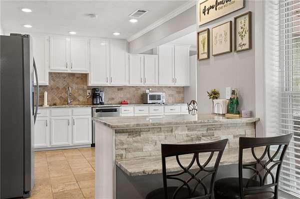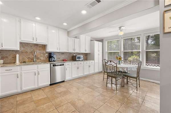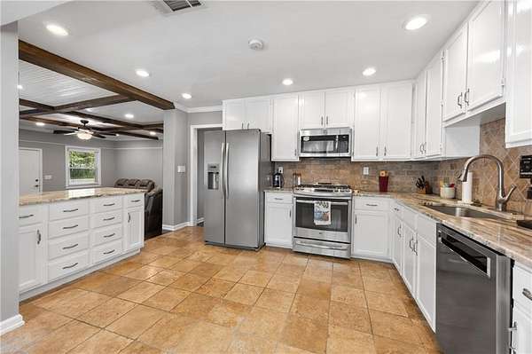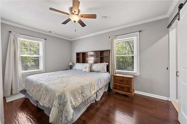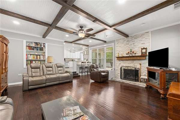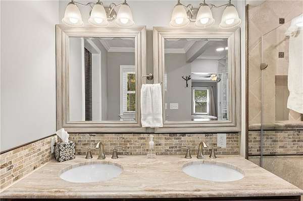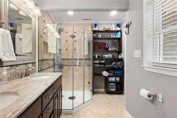 - Beamed Ceilings, Bookcases, Crown Molding, Disappearing Attic Stairs, Double Vanity, His and Hers Closets, Low Flow Plumbing Fixtures, Recessed Lighting