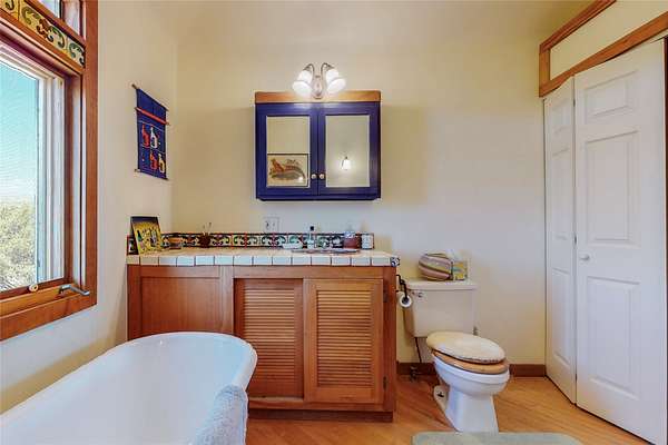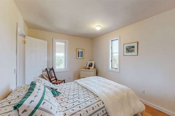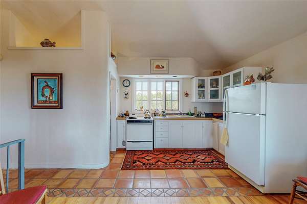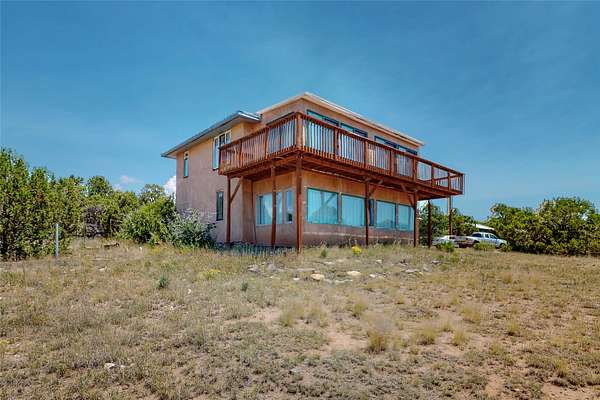 Country Living @ its best, 175 Hidden Valley Ranch Road, Ilfeld, on 5.025 acres, has much to offer buyers in a quiet rural setting. The land adjoins Val Kilmer's former ranch for 661 feet, and the house offers undisturbed views of Rowe Mesa to the west and Cow Creek Valley to the east. The creatively designed two-story home has wrap around deck, two sunrooms( 1 on each level) with heat retaining floors, and is sited for privacy and views. There are three bedrooms (two up, one down) 2 bathrooms with Talavera Mexican hand-painted sinks and tile counters, a country kitchen with a walk-in pantry, a living room with vaulted ceiling and Waterford wood burning stove backed by floor-to-ceiling artistic stone heat shield. Other features include one car garage/shop, a 16' by 12' storage shed with electricity, a private well, an inviting mud room, two stairways (one metal, one oak), 1000 gallon water storage tank, all appliances -washer, dryer, oven/stove, refrigerator, Saltillo, Oak and Maple flooring and 1 of the 5 acres is dog fenced. For folks looking for a destination property 50 minutes from Santa Fe and 35 minutes from Las Vegas, please consider 175 Hidden Valley Ranch Road.