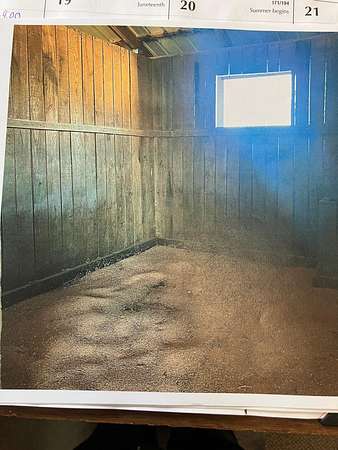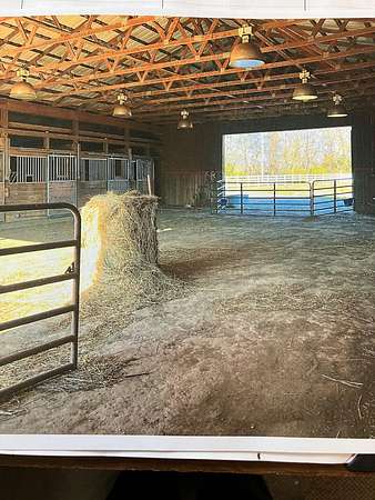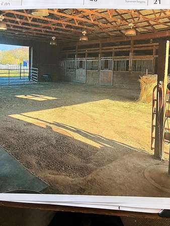Est $1,821/moHORSE LOVER ALERT, 10 stall barn (two mar & foal stalls), with apple, pear and peach orchard trees. 3.387 acres level fenced with vinyl and/or wood. Barn has electric and water. 3-sided shed for storing hay. There is a pond. Property is located in the flood plain. There is a total of 3.387 acres. More pictures will be posted later