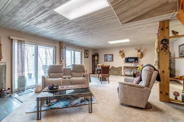 Est $2,431/moPerched on 1.73 acres atop a hill overlooking Lake Minifenokee, this 3 bedroom (possible 4th) 3.5 bath home is filled with natural light from the open kitchen and living area and features multiple patio doors that bring the outdoors in. A spacious loft offers additional living space, while the walkout basement includes a cozy wood-burning fireplace. The large detached building provides storage plus a heated and cooled space with a relaxed cabin feel, complete with a front porch overlooking the wooded yard and abundant wildlife. Deeded lake access included.