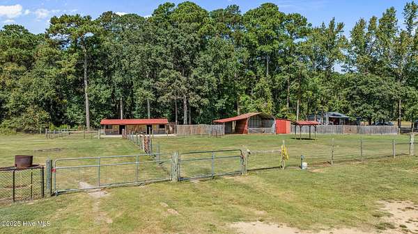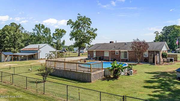 Welcome to this charming updated brick ranch nestled on nearly 4 UNRESTRICTED ACRES in the highly sought-after Rosewood community. A true haven for horse lovers and homesteaders alike, this mini farm offers both functionality and beauty with over 400 feet of road frontage and thoughtfully designed pastures secured by woven wire fencing and gated entrances. Concrete horse stalls with tack room provide convenience for equestrian care, while a 24x44 wired shop, multiple storage sheds, and additional septic tanks, water meters, private wells, and electric hookups ensure endless possibilities for future use. The home itself has been tastefully updated with modern touches including vinyl windows, granite countertops, and new kitchen & bathroom cabinetry. A large, open living room anchored by cozy gas logs creates the perfect gathering space. Outdoor living is just as inviting with a rocking chair front porch, a brick paver patio, and a sparkling pool ready for summer enjoyment. Covered carport parking adds functionality, while the landscape is graced by mature oaks, bradford pears, crepe myrtles, and grapevines, offering both shade and charm. This property is a rare opportunity to own a peaceful mini farm in a prime location without restrictions-an ideal setting to bring your horses, establish your homestead, or simply enjoy the quiet beauty of country living.