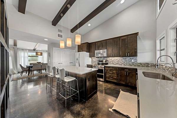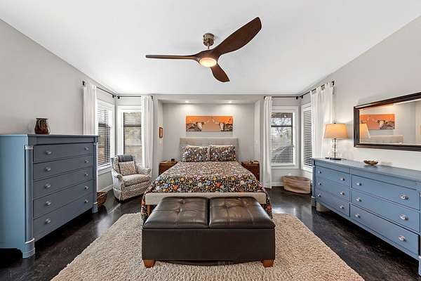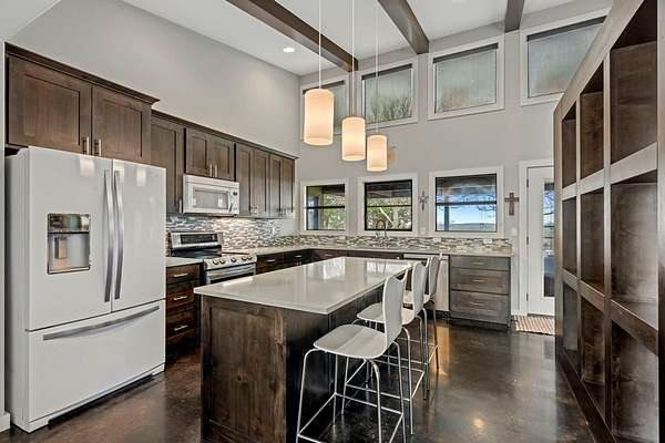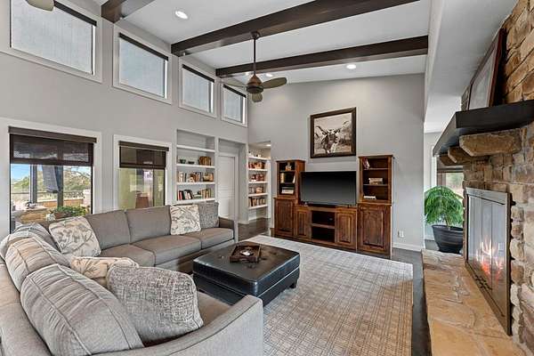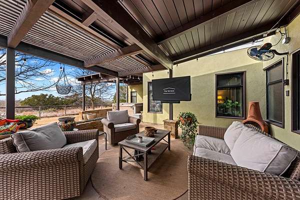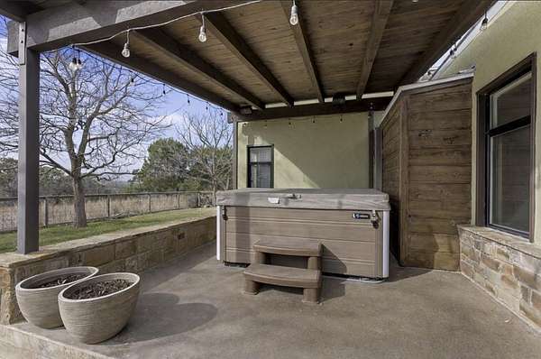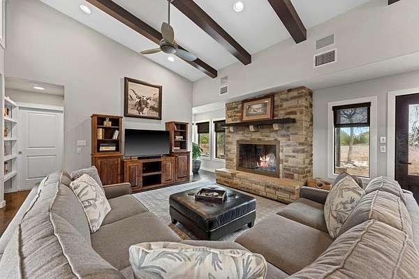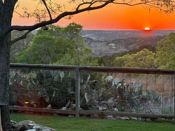 Privately set on 5 scenic acres in Kerrville Country Estates, this beautifully designed Texas Hill Country home w/a modern twist captures sweeping long-range views, stunning sunsets, and the peaceful rhythm of country living, all just minutes from town & everyday amenities. Built in 2013 & thoughtfully designed for flow & easy living, the 4-bedroom, 3.5-bath residence blends timeless Hill Country character w/clean contemporary finishes. Expansive windows frame the surrounding landscape while soaring ceilings & concrete floors create an open, light-filled interior. The split floorplan offers ideal privacy. The primary suite is tucked away, while two secondary bedrooms share a Jack & Jill bath. A separate guest suite features its own ensuite. The dedicated media room/office adds flexibility for work, study, or entertainment. At the heart of the home, the kitchen is both beautiful & functional w/seamless connection to the main living areas, ideal for gathering & entertaining. Beautifully appointed outdoor covered patio features a hot tub, expansive views, fenced backyard & breathtaking sunsets. The best of Hill Country living: space, style, and convenience in one exceptional setting!