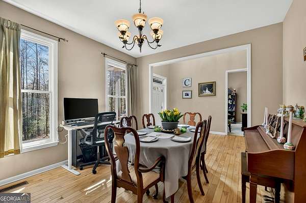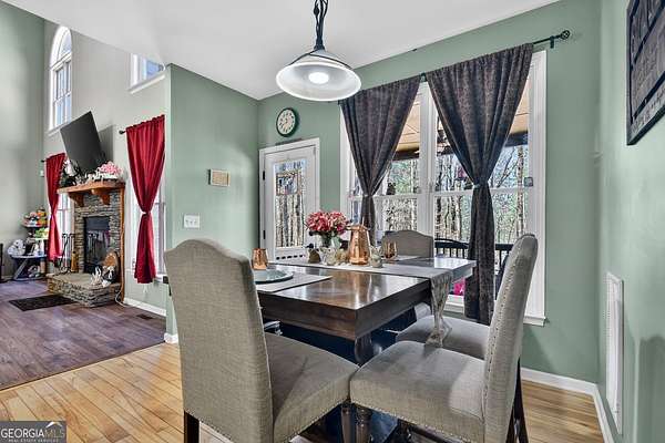 Welcome to your private North Georgia retreat! This spacious 4-bedroom, 4 full-bath traditional home sits on 3.02 wooded acres, offering privacy, room to roam, and easy access to the outdoors. Inside, you'll find a large kitchen perfect for cooking and gathering, complemented by both a separate formal dining room and a breakfast room for everyday meals. The cozy living area features a stone-faced wood-burning fireplace with an oversized mantel, creating a warm focal point for the home. A dedicated office provides the perfect space for working from home. The home offers flexible living with two master suites-one conveniently located on the main level and another on the second floor. The primary suite includes a shower and relaxing soaking tub, perfect for unwinding after a long day. The exterior has been recently painted, with some interior updates, plus newer shingles and HVAC, giving peace of mind for years to come. Step outside to enjoy the spacious rear porch and open-air deck overlooking a fenced backyard, ideal for pets, entertaining, or relaxing by the firepit. The low-maintenance yard is surrounded by mature trees, providing both beauty and privacy. Downstairs, the mostly finished basement offers incredible versatility with its own exterior entrance, second kitchen, living room, full bathroom, and two additional rooms, making it ideal for guests, extended family, or potential rental space. A new mini-split system keeps the area comfortable, and there is still an unfinished workshop for projects and storage. Additional features include a 2-car garage on the main level, long private driveway, and plenty of parking for guests. Located just minutes from outdoor adventure near Fort Mountain State Park and the United States Forest Service national forest lands, this property offers the perfect balance of peaceful mountain living with convenient access to hiking, biking, and nature. Only home in the entire community!