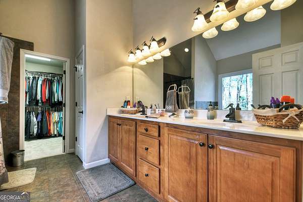 - Double Vanity, Entrance Foyer, High Ceilings, In-Law Floorplan, Master On Main Level, Separate Shower, Soaking Tub, Tile Bath, Vaulted Ceiling(s), Walk-In Closet(s)