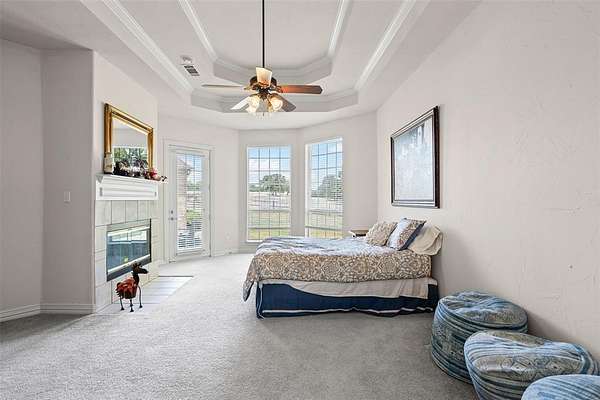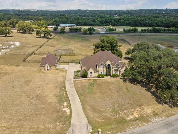 Welcome to this exceptional 5-bedroom, 3.5-bathroom home offering more than 4,100 square feet of living space, perfectly situated on just over 4 acres in an exclusive, gated community. From the moment you arrive, you'll appreciate the sense of privacy and tranquility that surrounds the property, enhanced by the fully fenced perimeter and wide-open views of the Texas landscape. Thoughtfully designed to blend comfort, functionality, and versatility, this home provides the perfect balance of modern amenities and country living. The home features generously sized bedrooms, each offering comfort and privacy. The expansive primary suite serves as a private retreat, complete with an ensuite bathroom designed for relaxation and convenience. Additional bedrooms are spacious and versatile, perfect for family, guests, or even creating dedicated home offices or hobby spaces. With multiple living and gathering areas throughout, the home provides plenty of options for quiet evenings at home or hosting larger get-togethers. A additional detached garage adds even more functionality to the property, offering additional parking, storage, or workshop space. For those seeking relaxation and wellness at home, a private sauna provides the perfect spot to recharge and unwind. Horse lovers and outdoor enthusiasts alike will appreciate the unique amenities this property offers. The barn features a loft room, 2 stalls with turnouts and a round pen. Complemented by access to a community-covered arena walking distance away, making it ideal for training, riding, or leisure. Beyond equestrian use, the more than 4 acres provide endless opportunities--whether you dream of gardening, creating outdoor entertaining spaces, or simply soaking in the privacy and quiet that comes with owning your own piece of land. This home truly gives you the freedom to shape the lifestyle you've been envisioning.