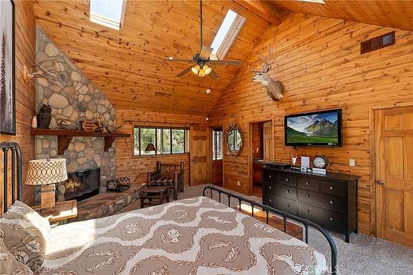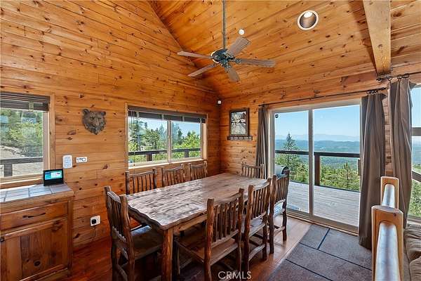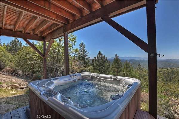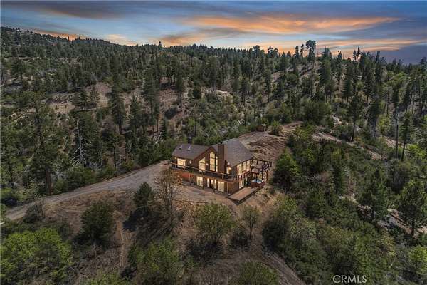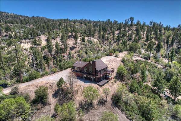 !!!VIEWS & MORE VIEWS!!! A rare opportunity! Escape to your own mountain sanctuary on five acres in the coveted Crab Flats area of Green Valley Lake. This stunning 5-bedroom, 2-bathroom home showcases breathtaking panoramic views of the mountains, hills, high desert, and Lake Arrowhead stretching across the distant valley, where every sunset becomes a daily celebration on your expansive estate. The wraparound deck and multiple dual pane windows frame spectacular vistas while flooding the rooms with natural light. The outdoor jacuzzi provides the perfect vantage point for soaking in legendary sunsets while nature's soundtrack plays around you. The Bottom level features the front door leading into the open foyer, bedroom 1 with garage access and separate outdoor access, bedroom 2, the laundry room, bonus office nook, the full bathroom, and bedroom 3 with bottom deck access to the jacuzzi. Head up to the Main level and immediately notice the beautiful vaulted beamed ceilings, sunken living room with river rock fireplace, wraparound deck access, and even more expansive views. There is always plenty of room in the dining area and kitchen for indoor entertaining! The Main level also features bedroom 2 with exterior access, the full bathroom with dual sinks, and the primary bedroom with exterior access, bright skylights, walk-in closet, and its own river rock fireplace. The solar and Generac-powered, off-grid design appeals to those valuing sustainability and self-sufficiency. The attached two-car garage provides convenient storage for vehicles and outdoor gear essential for adventure enthusiasts. What truly sets this property apart is its remarkable seclusion across five private acres. Away from traffic and urban noise, this peaceful haven offers the rare opportunity to disconnect and recharge while maintaining modern comforts on your own mountain estate. The surrounding wilderness also provides endless recreational opportunities, making this an ideal basecamp for hiking, fishing, off-roading, mtn or dirt biking, and exploring Green Valley Lake and other mountain regions. This is more than a home - it's a lifestyle choice for those ready to embrace tranquil mountain living with unforgettable views.