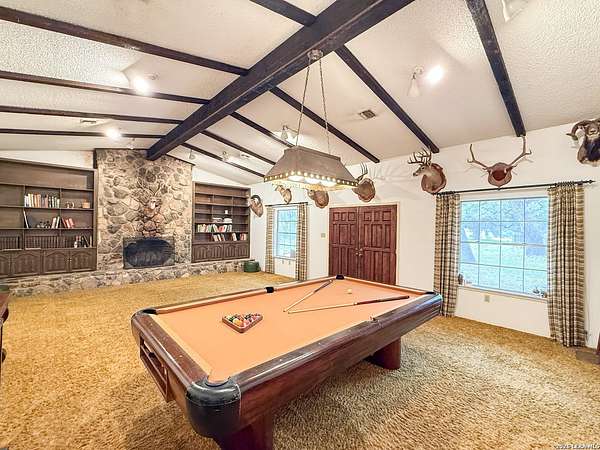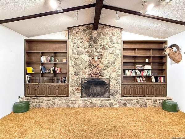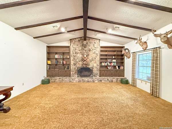 Set on a generous 1.5-acre lot, this charming home offers space, comfort, and timeless appeal. The classic brick exterior creates a warm, inviting first impression, while inside, an oversized living room is the heart of the home with vaulted ceilings and a cozy wood-burning fireplace. The kitchen features a breakfast bar and flows seamlessly into the dining area, making everyday living and hosting easy. With three well-sized bedrooms and two bathrooms, the layout is both functional and comfortable. Step outside to enjoy the expansive backyard, where a patio slab provides the ideal setting for outdoor gatherings or quiet evenings under the shade of numerous mature oak trees. Just minutes from everyday amenities, this home blends peaceful country living with modern convenience. Don't miss the opportunity to own your own slice of Texas, schedule a showing today!