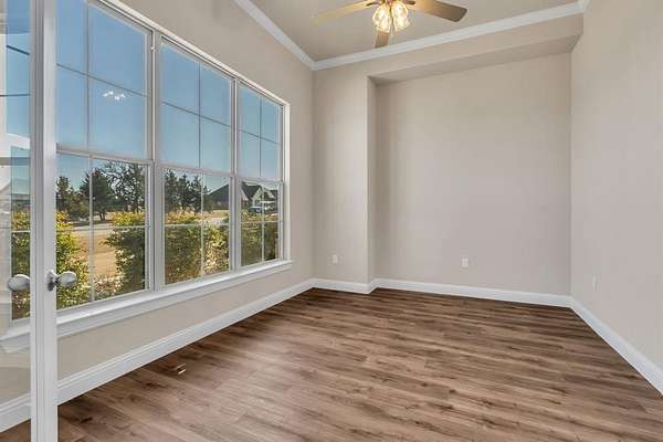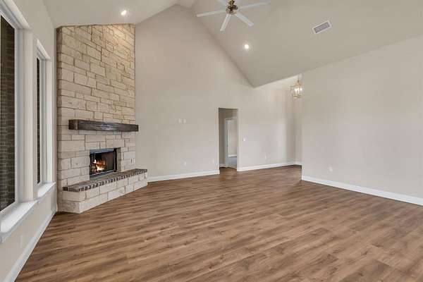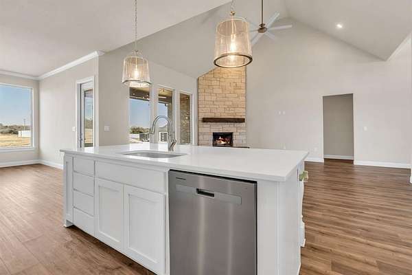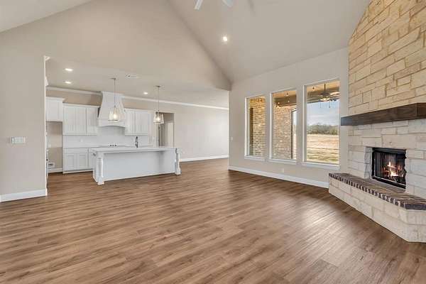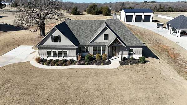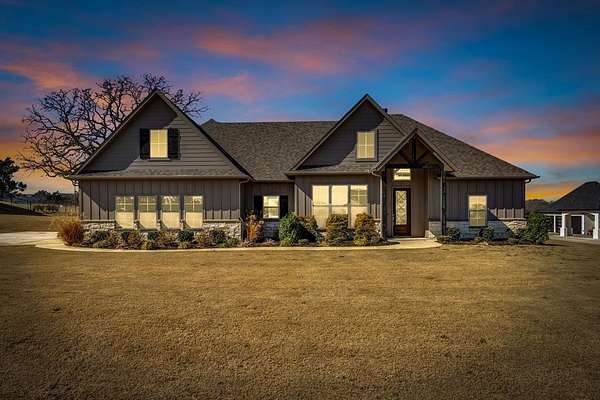 Escape to peaceful country living with breathtaking sunsets in this beautifully maintained custom Craftsman home on 2 full acres in Decatur ISD. Built in 2023, this 3-bedroom, 2.5-bath, 2-car garage home offers 2,466 sq ft of thoughtfully designed living space just minutes from the courthouse square and historic downtown Decatur. Inside, you'll find luxury vinyl plank flooring, soaring vaulted ceilings, and a stunning floor-to-ceiling stone fireplace in the spacious open-concept living area--perfect for entertaining. The chef's kitchen features Whirlpool appliances, double ovens, ample cabinetry, a roomy pantry, and a large island for gathering. The private primary suite offers a garden tub, frameless glass walk-in shower, and oversized walk-in closet. A dedicated office or flex room provides space for working from home or hobbies. Secondary bedrooms feature a split-bedroom arrangement for added privacy and share a convenient Jack-and-Jill bath. Enjoy summer evenings on the covered back patio with peaceful country views. The yard is supported by an automatic sprinkler system, and a private water well services the entire property. Energy-efficient central HVAC with a heat pump provides year-round comfort. With room to build a shop, add a pool, or bring your horse, this property offers endless possibilities. A large storage container at the rear of the property provides additional storage or workspace. Located in a well-maintained neighborhood with other custom homes, paved roads, and NO HOA, this home offers the perfect blend of privacy, convenience, and modern comfort. Don't miss this rare opportunity to enjoy country living with city access nearby!