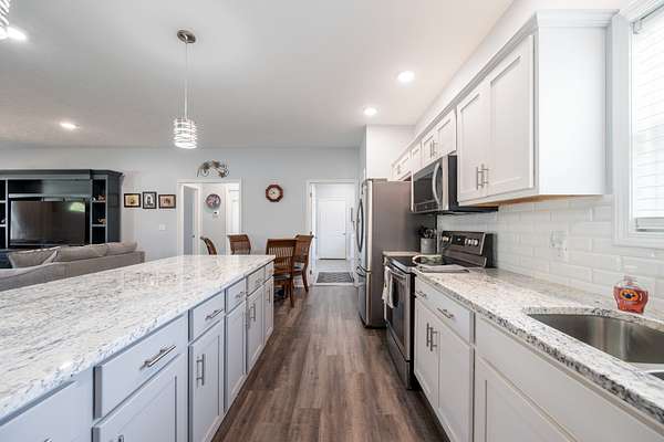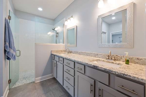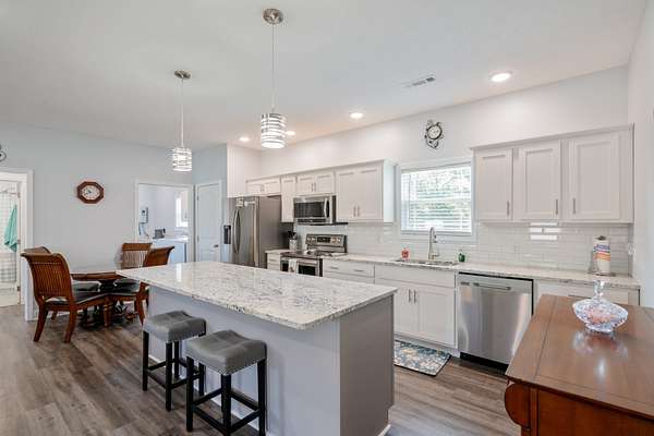 This custom-built beauty offers every upgrade you could imagine. The chef's kitchen features high-end appliances, a massive island, and a cozy eat-in dining space perfect for gatherings. The primary suite is spacious enough for a sitting area and leads into a spa-like bathroom with a huge walk-in shower, complete with a rainforest showerhead. Two oversized walk-in closets are larger than many bedrooms!