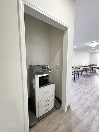 - Access to a full kitchen & dining space. -Two bathrooms for convenience. - Dedicated printer space.
