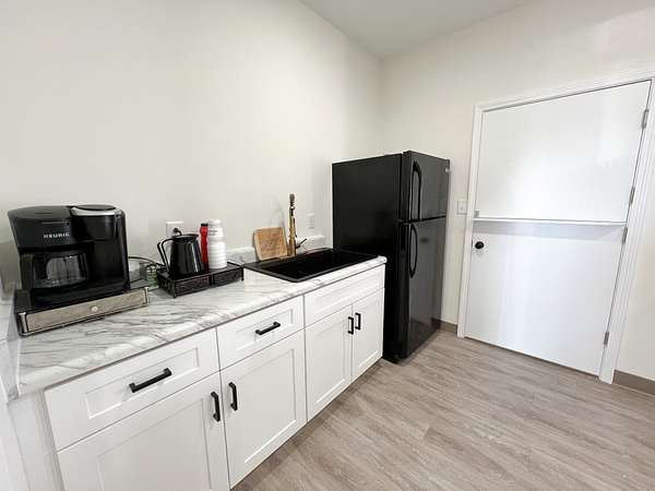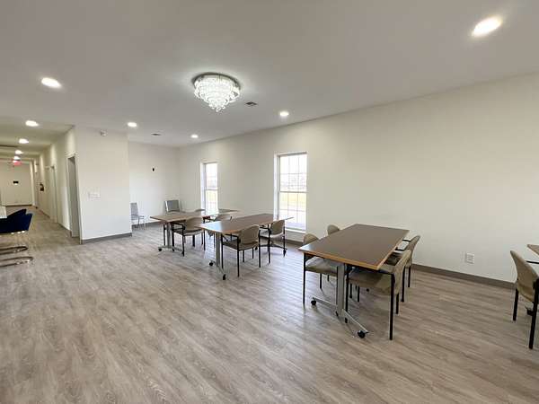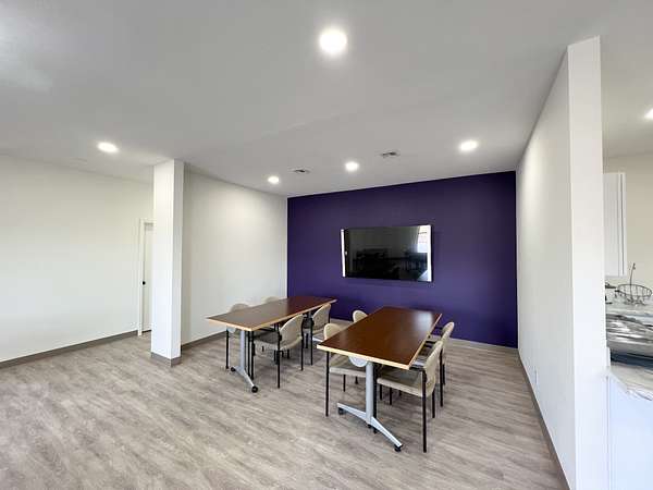 Amenities include: Access to a full kitchen & dining space. Two bathrooms for convenience. Dedicated printer space. Ideal for homeschool groups, counseling sessions, podcasting, and more!