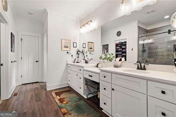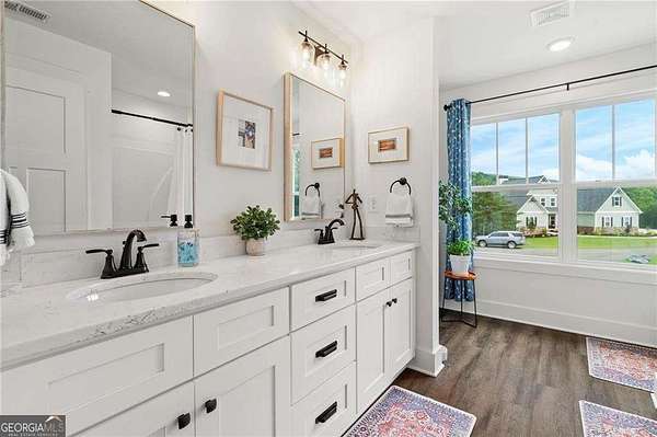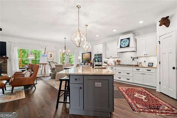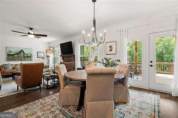 So many captivating features in this "ALMOST NEW" 2021 construction home. Gorgeous! Freshly painted with lots of upgrades inside and an OPEN floor plan that includes OWNERS SUITE ON THE MAIN LEVEL. Where else can you find all of this on a cul-de-sac lot, with 3 acres, in a gated community, where the view includes mountains in the distance, nicely landscaped grounds, woods on the property, and plenty of grass for outdoor activities or just relaxing by the warmth and comfort of the firepit. This is it! Low, low HomeOwners Association dues too. The large front porch "invites" you in. You can only imagine sitting there and enjoying its truly tranquil space. As you enter the home, you are greeted by a light-filled foyer. High quality LVP flooring gives the home the warm feel of wood with the durability suitable for an active lifestyle. The kitchen is impressive with features like soft close cabinets, stainless appliances, double ovens, a microwave drawer, a pot-filler sink over the stove, a walk-in pantry, a large breakfast counter, and an inviting dining space. There is even an office on the main level...so working from home is a breeze! But wait....that office is easily converted to another bedroom if that is your preference; all by just putting a door on the space. You will love the spacious great room; sit by the fire at the fireplace. The great room "walks out" by way of double doors to the fabulous covered porch out back; adding so much to this home's comfort particularly in the warmer months. Upstairs you will find a generously sized loft space with three additional bedrooms surrounding it; plus a large bath with double vanities. This home includes an unfinished basement, stubbed for bath; great for your storage needs, or for completing the space to accommodate future needs. Imagine a media space or an additional living space there; maybe even with a 2nd kitchen! The unfinished basement includes a "SAFE ROOM". If you're not familiar, "safe rooms" are designed to provide near-absolute protection for occupants. Not to be overshadowed is this property's 3+ acre lot, fenced, with plenty of lush green grass, a wooded area, and of course room for a pool. Not to be denied, this is a lovely place to call "home".