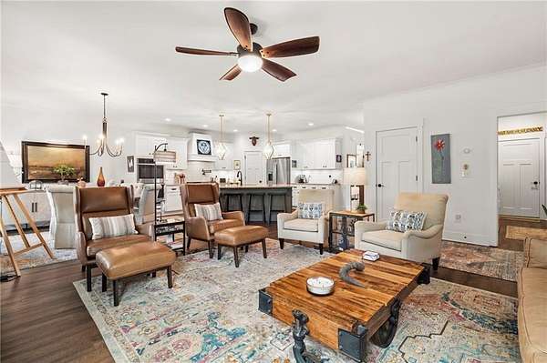 Nestled in a private gated community on a 3-acre cul-de-sac lot, this stunning 5-bedroom, 3-bath home offers 3,000 sq ft of elegant living space. The beautifully designed interior features modern finishes and thoughtful details throughout, including luxury vinyl flooring on the main level and granite countertops in both the kitchen and bathrooms. Enjoy picturesque mountain views from the front porch, or relax on the covered back deck overlooking a spacious fenced yard complete with a fire pit and mature fruit trees. The home also includes a large unfinished basement with a safe room and terrace-level patio access.