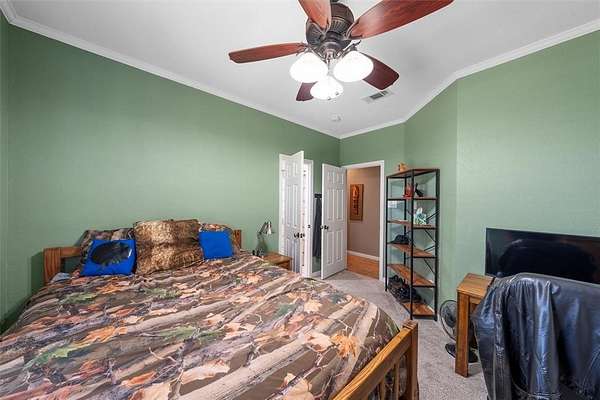 Discover the epitome of elegance in this stunning Crawford, TX estate, perfectly situated on 1.89 acres in the serene landscape of the Three 17 River Oaks subdivision in Crawford ISD. This exceptional home features 4 spacious bedrooms, 3.5 baths, a game room, and a generous 3-car garage. Offering 3,292 square feet of meticulously designed living space, this home perfectly blends traditional charm with modern comforts. The open floor plan seamlessly connects the living areas, creating an ideal environment for both intimate gatherings and grand entertaining. The main living space features a fireplace, tall ceilings, and is open to the bright & airy formal dining space. The gourmet kitchen is a chef's dream, featuring a Jenn-Air Gas cooktop, built-in oven, granite counters, ample storage space, and custom cabinetry, all designed to inspire culinary creativity. Retreat to the primary suite, a private haven that offers a spa-like en suite, complete with a soaking tub, separate walk-in shower, expansive walk-in closets, and dual vanities. Each additional bedroom provides ample space and comfort, ensuring restful nights and relaxed mornings. The upstairs game room will be the kids favorite getaway & has potential to be a 5th bedroom. Additional interior features include plantation shutters, tall ceilings & tile throughout the first floor. Exterior highlights include sprinkler system, fenced yard space for pets, a storage building, plus classic brick and stone architecture, contributing to the property's striking curb appeal. Expansive outdoor spaces invite leisurely evenings in a serene, park-like setting, perfect for enjoying the Texas sunsets under wide open skies. Experience the perfect blend of luxury and tranquility--your dream home awaits in Crawford.