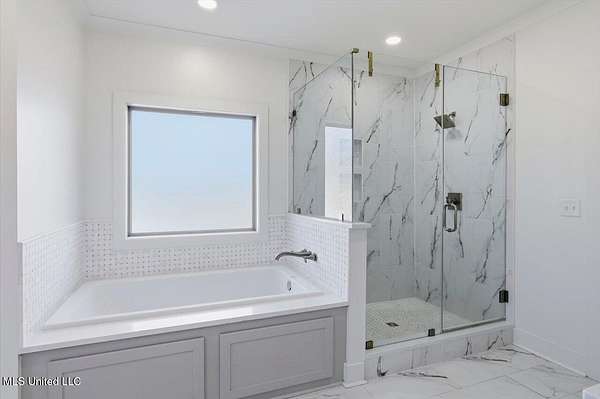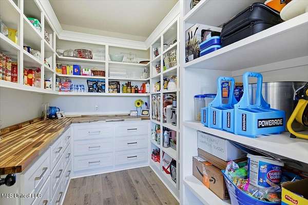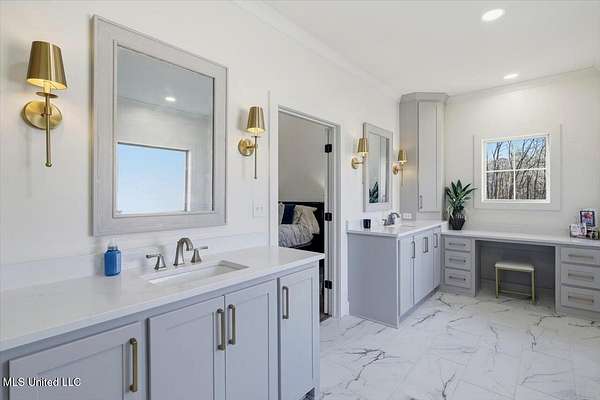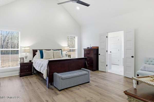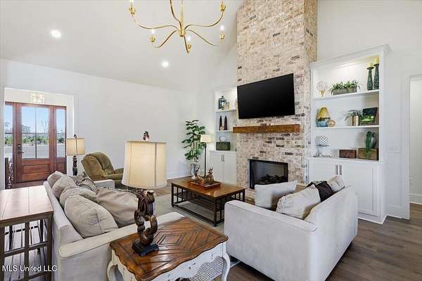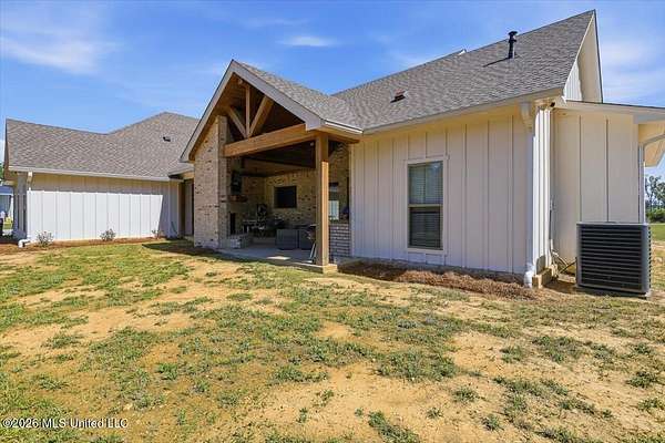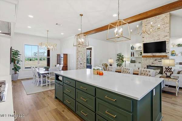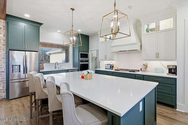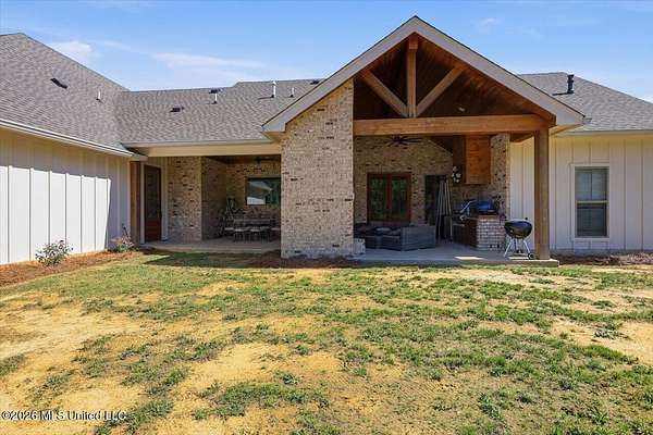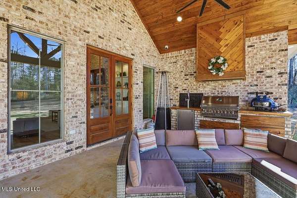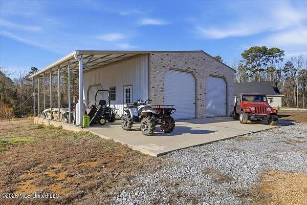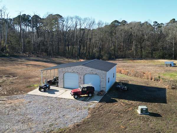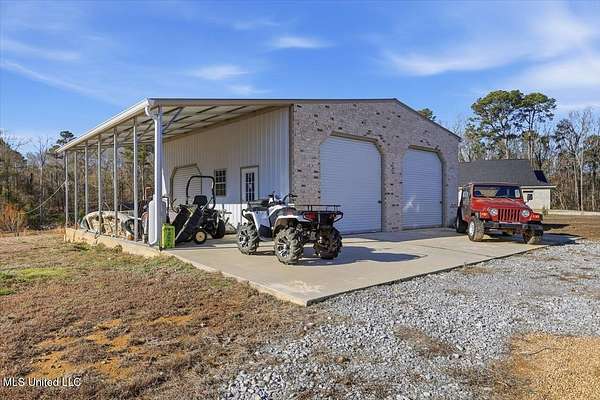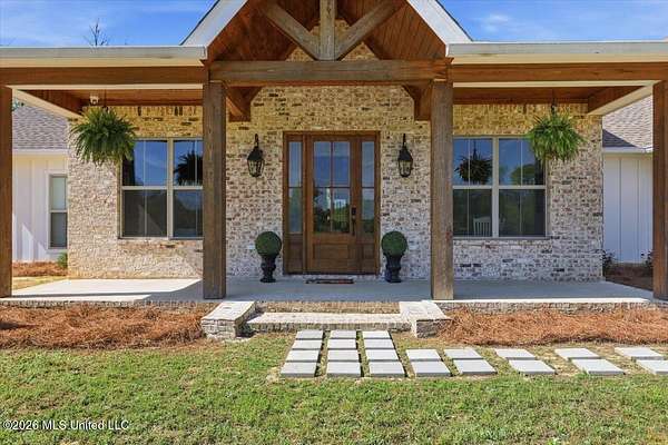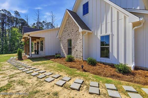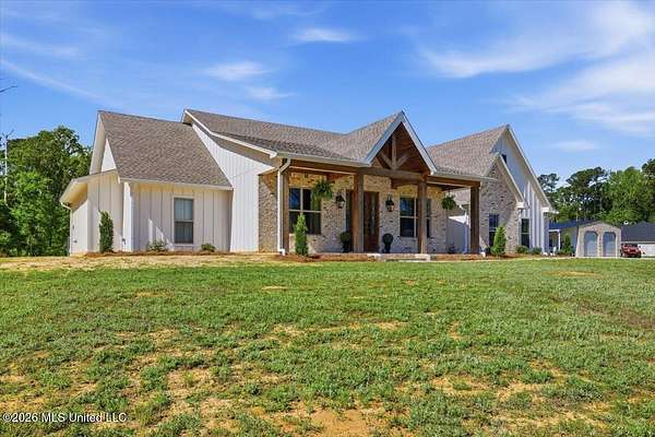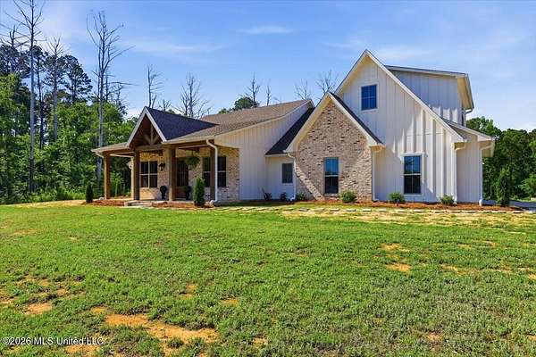 Are you looking for the home that has it all on acreage in Madison?? You found it! This stunning custom built 4 bedroom/3.5 bath home offers refined craftsmanship, open-concept living, and exceptional indoor & outdoor spaces, all set on a 5.5 acre private, peaceful setting that backs up to the Natchez Trace Parkway and the Ross Barnett Reservoir. The attractive exterior blends timeless brick with modern farmhouse-style siding and an inviting covered front porch accented by wood beams. Inside, the home opens to a spacious living area with soaring ceilings, exposed wood beams, and abundant natural light. The formal entryway leads way to a professional office with tasteful styling from the intricate reclaimed French doors to the art deco light fixture that illuminates the color drenched room. Continuing on the living room flows seamlessly into the gourmet kitchen that is ideal for both everyday living and entertaining. The kitchen features a large center island, custom cabinetry, and Frigidaire stainless steel appliances that include: double ovens, gas range, vent hood, built-in microwave, dishwasher, refrigerator. All of this wrapped in gorgeous white quartz countertops and stylish hexagonal tile backsplash. Oh and don't forget the large farm sink with modular accessories with a large window overlooking the serene treelined backyard! Off of the kitchen is a large dining area accented with a lovely chandelier and perfect for any size table. Down a quick hallway off of the kitchen is a very tastefully crafted butler pantry with built-in beverage cooler and glass paned cabinet doors for displaying unique pieces or hard to find spirits. Then....... enter the pantry! If nothing has sold you yet, then this pantry will! With loads of storage and a very spacious counter, there is room for all the snacks, seasonal dinnerware, counter top appliances and then some! Beyond the kitchen is the garage door area with a convenient drop zone area and then a really nice powder room styled with modern wallpaper and accented with antique gold hardware. Further down the hall is a large laundry room with sink, storage cabinets, and hanging bar. Then finally the home opens to the large primary suite with cathedral ceiling! The huge ensuite bathroom opens through French doors and feels bright and clean with the light colors and natural light. It features two separate vanities (one with makeup counter), large garden tub, separate shower, and a water closet. The bathroom then opens into the large walk-in closet with plenty of space for clothes and shoes for those with an extensive wardrobe collection. But through one more door you are right back to the laundry room for added convenience when you're waiting on that one thing in the dryer on busy mornings! Up a flight of stairs is a large guest bedroom with private bath, walk-in closet, and another playroom/office/craft room/teenage hangout room or whatever you need it to be! Back downstairs there is a hallway off of the living room with two guest bedrooms connected by a jack-and-jill bathroom. Outside is where the dream really starts to come alive beginning with a massive back porch featuring a cathedral ceiling and large exposed wood beams. There is a nice outdoor grilling area with a venthood and built-in kegerator. The gas log fireplace is perfect for keeping warm while watching the game just above and the large patio area offers ample space for dining, entertaining, and relaxing! Around the corner is a 30x30 shop with 12' covered awning and features 3 roll up doors for easy access to store toys and equipment. The shop is plumbed and water is run for a bathroom and a dedicated transformer is just feet away to added electricity. Speaking of storage, the garage was built to accommodate large vehicles and has a 26' depth to keep you out of the rain while unloading groceries. All of this and only 10 minutes from downtown Madison! Come see your new dream home today!