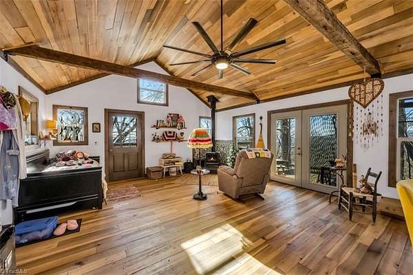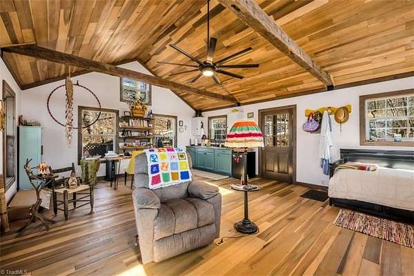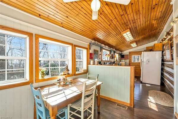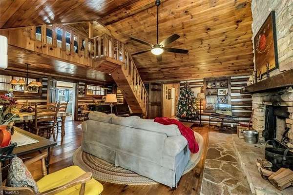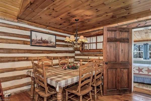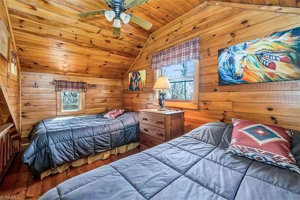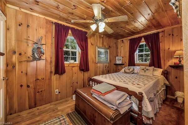 This unique property has a total of 3 cabins. The information I have provided is for the "Old Cabin". The "Little Cabin" has a total of 736 square feet with an open concept floor plan. Living area, Kitchen and 1/2 bath on the main level with a spiral staircase leading to the primary bedroom and full bath in the lower level. Large deck with Mountain Views AND views of the Charlotte Skyline. "Lely's Place" cabin was built in 2018-2020 and has 444 square feet. Hardwood floors, vaulted ceiling, open concept with deck over looking peace and serenity. This cabin is not hooked to septic as it has a compost toilet in the bathroom. Another great feature of this property is a secluded campsite on the property. This property is one of a kind and would make a wonderful retreat/ getaway for someone. Restricted against doublewides and singlewides. The Old Cabin and the Little Cabin share septic and well.