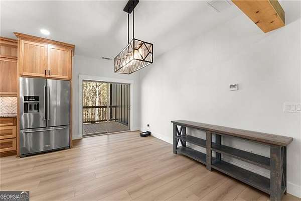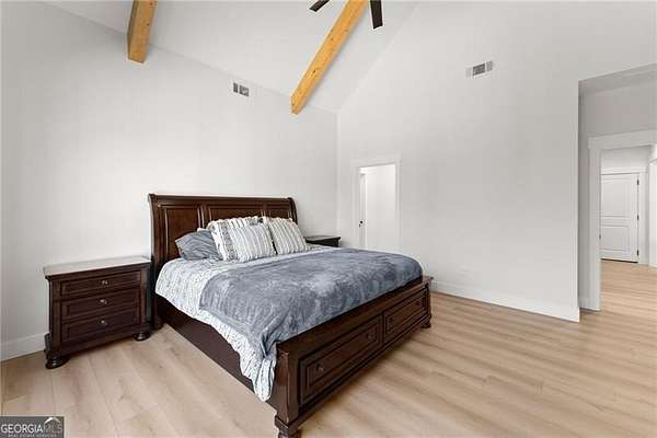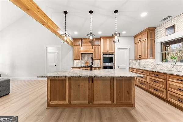 Excellent opportunity in the sought-after community of Panorama Estates, where modern craftsmanship meets peaceful acreage living. From the moment you arrive, you're welcomed by a stunning farmhouse-style front porch that sets the tone for the warmth and quality found throughout this home. Built in 2025, this thoughtfully designed 3-bedroom, 2-bath ranch sits on a private and highly usable 4.51-acre lot, offering the perfect blend of comfort, space, and long-term value. Inside, the open-concept floor plan creates an inviting and functional layout ideal for everyday living and entertaining. The family room is truly a showpiece, featuring vaulted ceilings accented with beautiful wood beams extending to the peak and a striking stone fireplace that stretches all the way to the ceiling. Custom built-in cabinetry adds both charm and practical storage. The kitchen is equally impressive, showcasing custom hickory cabinetry that extends to the ceiling, primarily drawer-based lower cabinets for optimal organization, granite countertops on all surfaces, a ceramic tile backsplash, stainless steel appliances, and under-cabinet lighting that provides both style and functionality. Every detail has been carefully selected to create a space that is both elegant and highly efficient. The spacious primary suite continues the elevated design with vaulted ceilings and wood beams that add warmth and character. The en-suite bath offers double vanity sinks, granite countertops, and a large walk-in tile shower with frameless glass for a clean, modern finish. Solid-core bedroom doors and sound-dampening interior walls at bedrooms and laundry areas enhance privacy and comfort throughout the home. A full unfinished basement with 10-foot poured concrete foundation walls provides exceptional structural strength and is already stubbed for plumbing, making it ready for your future expansion plans. The covered rear porch-complete with a ceiling-mounted outlet for lighting or decor-is perfect for relaxing or entertaining while enjoying the privacy of your acreage. Additional features further highlight the quality of construction, including energy-efficient 2x6 exterior walls with upgraded insulation, insulated garage walls and doors, a side-entry garage with a custom built-in drop zone upon entry, a dedicated electrical outlet in the hickory wood mantle for seasonal decor, and all general wall outlets wired on 20-amp circuits to support modern living. The home is also future-ready with Category 6 (Cat6) Ethernet drops in every room routed through flexible conduit to a centralized basement location, along with pre-wiring for security cameras and wireless access points. This is a rare opportunity to own a newly built, thoughtfully engineered home on acreage in Panorama Estates-offering timeless farmhouse style, high-end finishes, and the infrastructure to support today's technology and tomorrow's possibilities.