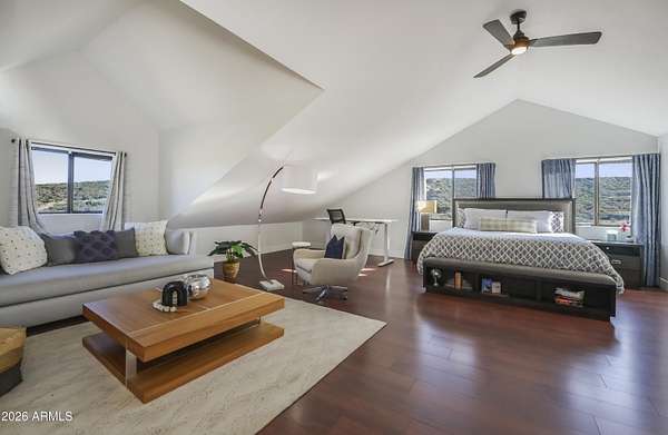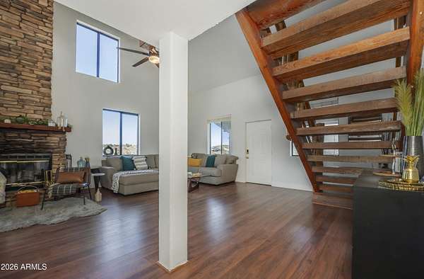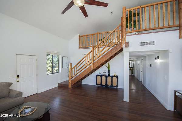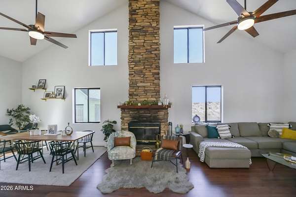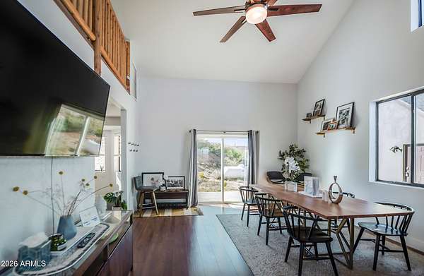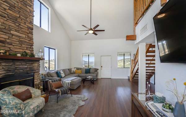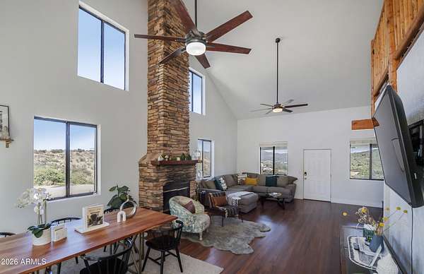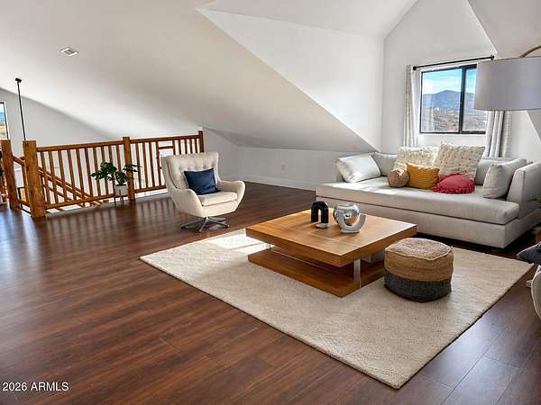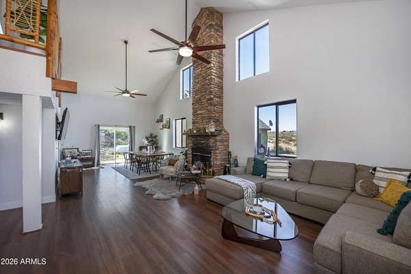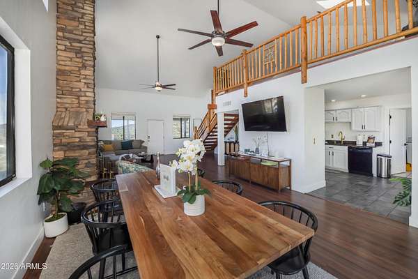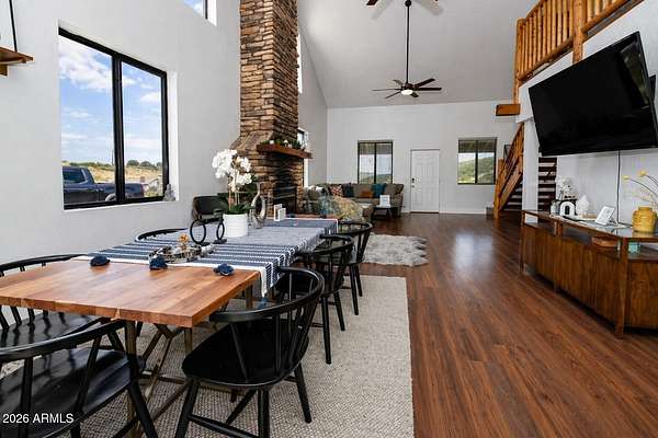 Est $3,589/moListed below appraised value. Enjoy starry nights under the Arizona skies at this nicely updated modern rustic cabin A frame home on 3.98 acres. 4 well appointed spacious bedrooms, 2 remodeled bathrooms, open concept living spaces AND loft areas. 2 car garage with loft. Large dining room and an eat in kitchen. Currently is an operating short term vacation rental. Furnishings could be included on a separate bill of sale. Mountain views, vacation getaway or full time rural living minutes from town.