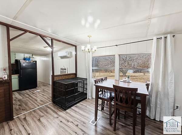 This unique property offers approximately 2.5 acres, with 1.5 acres fenced and ready for cattle or horses, making it a great opportunity for those looking to create a mini-farm. A single-wide home sits on a block foundation and features a covered front porch and back deck to enjoy the outdoor setting. The property is served by well and septic. Heating and cooling are provided by two mini-split systems, and oil heat is available but not currently in use. Several outbuildings convey with the property, including a double-car garage, one farm building, a chicken coop, and a workshop. Property is being sold AS-IS. Cash or Land Financing, property will not qualify for government financing. Owner occupied-please allow 24-hour notice for showings. Square footage of the single-wide is estimated and not guaranteed. Information taken from tax assessment and/or seller. Buyer and buyer's agent to verify all information. Some photos are enhanced to brighten the interior.