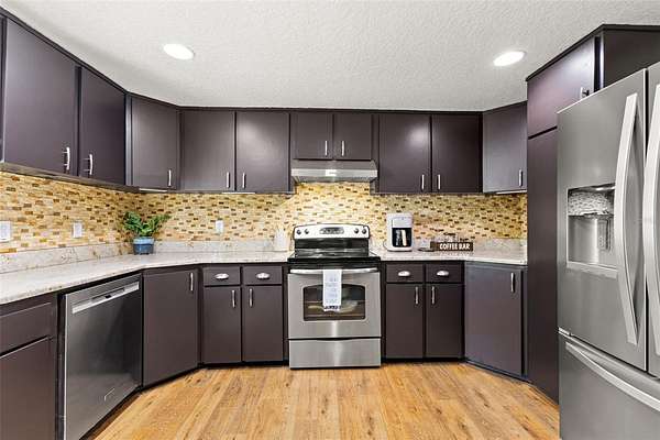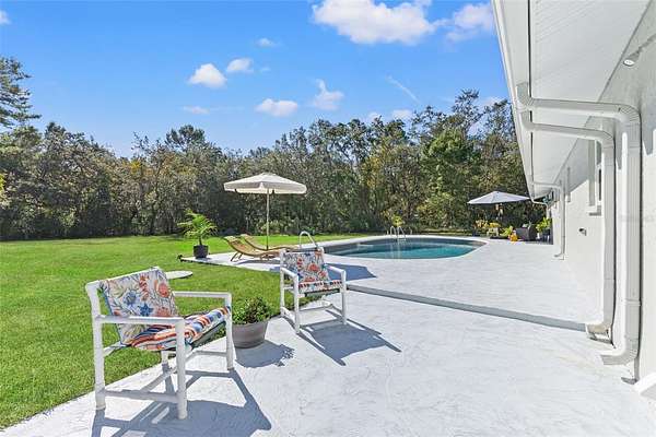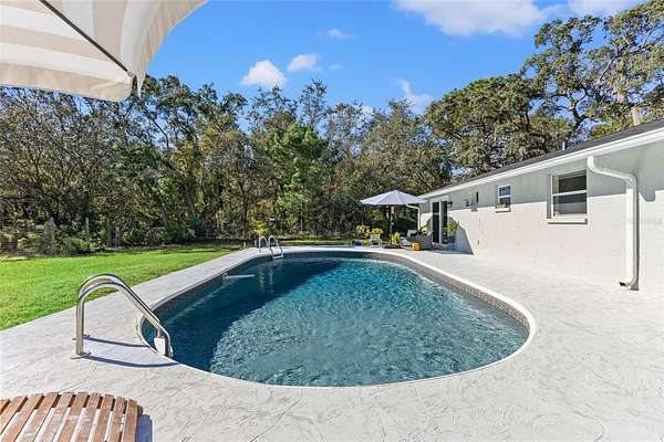 Outside, your backyard oasis is complete with a BRAND NEW stamped concrete lanai surrounding a SPARKLING POOL (That you just have to see!)--the perfect spot for enjoying Florida's sunny weather in privacy.