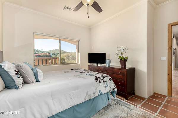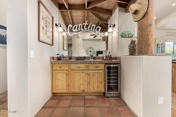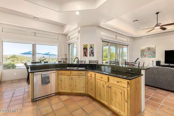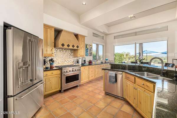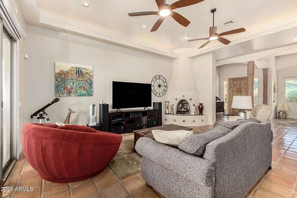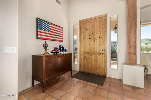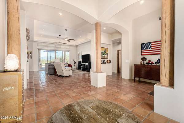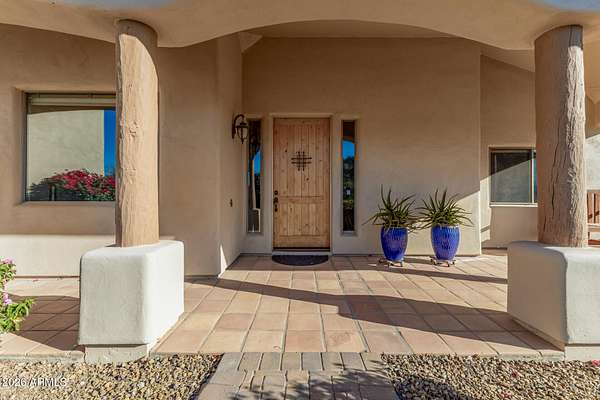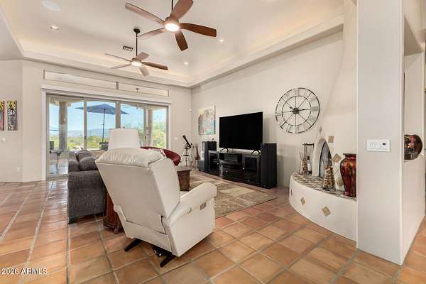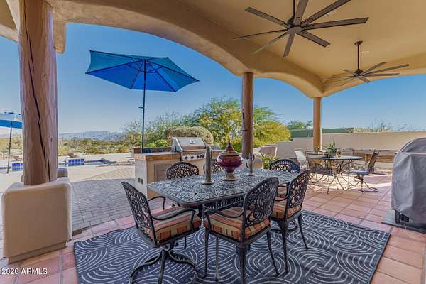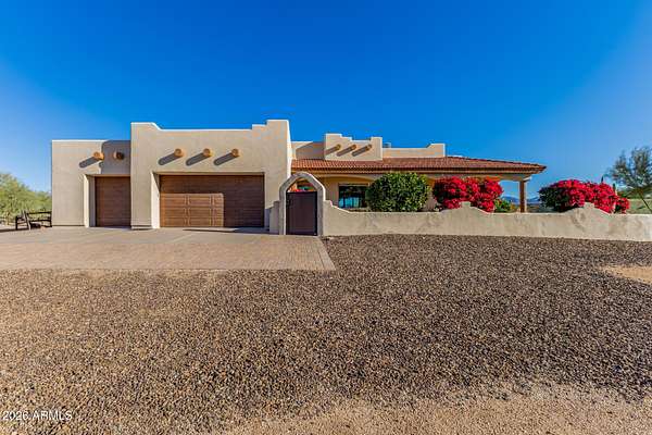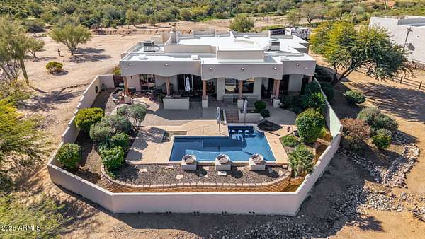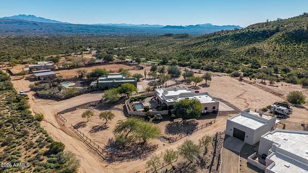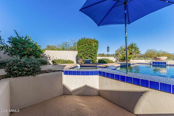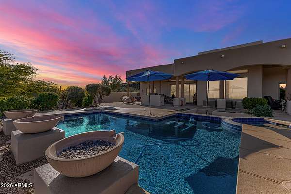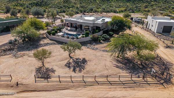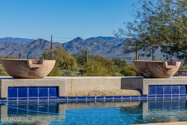 Experience true Arizona desert living on this exceptional 3 bed, 2.5 bath, 2,503 sqft home situated on a sprawling 70,872 sqft lot (1.6+ acre) - one of the rare parcels in the area ON CITY WATER. Backing to a mountain and surrounded by open desert, this private retreat captures breathtaking panoramic views of McDowell Mountain Park, Four Peaks, the Mazatzal Mountains, and unforgettable sunset skies. The backyard is designed for entertaining and relaxation with a resort-style pool featuring a swim-up bar, expansive cool decking, and a built-in BBQ under a covered patio complete with ceiling fans and stunning mountain views. Inside, you'll find an open-concept layout with newer appliances, a spacious kitchen overlooking the great room, and a wet bar perfect for hosting. The primary suite is a serene escape with a private patio sanctuary, extra-large walk-in closet, walk-in shower, and separate dual sinks. Tile flooring, warm wood cabinetry, and large windows bring in natural light and frame the surrounding desert beauty. Car enthusiasts and hobbyists will love the oversized 3-car garage, plus there's ample space for horses, toys, and outdoor living. A detailed list of upgrades, improvements, and maintenance (including a new AC in 2021) is available in the Documents tab. A rare combination of views, privacy, upgrades, and usable land - this is desert living at its finest.