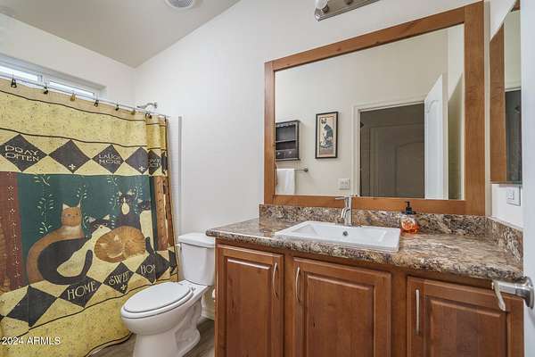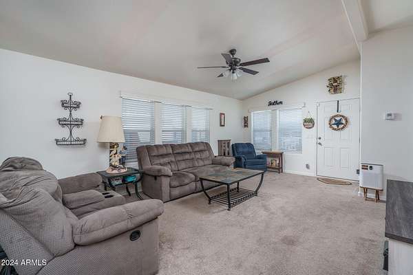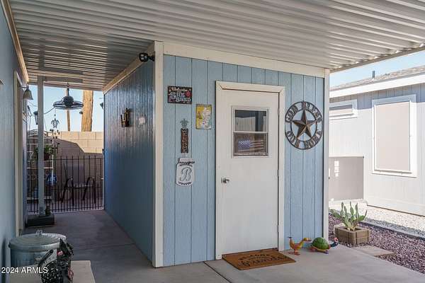 Welcome to this rare ground-set home at Cotton Lane Resort. You will love the front patio and the beautiful neutral tones throughout the home. The kitchen has granite countertops, gorgeous cabinetry with crown molding, stainless steel appliances, and a peninsula breakfast bar. Enjoy the primary suite with a vaulted ceiling and an ensuite bathroom with dual sink vanity. Plus, there are cabinets in the laundry room and a shed in the carport for additional storage. Cotton Lane Resort is a 55 Plus age-restricted community with plenty of amenities for its residents to enjoy. There is an indoor pool, putting greens, billiards/darts/, sports courts, a fitness area, a Par 3 golf course and easy access to freeways!