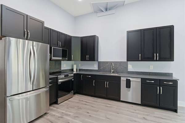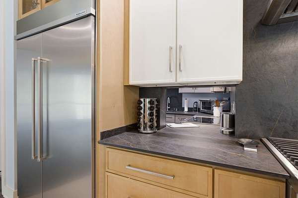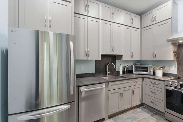 - Built-In Gas Range, Dishwasher, Disposal, Electric Oven, Microwave, Refrigerator, Stainless Steel Appliance(s)