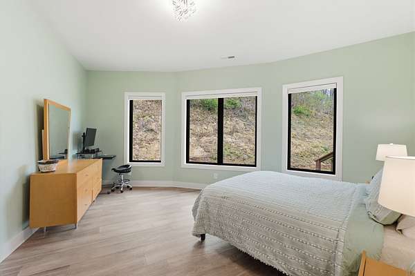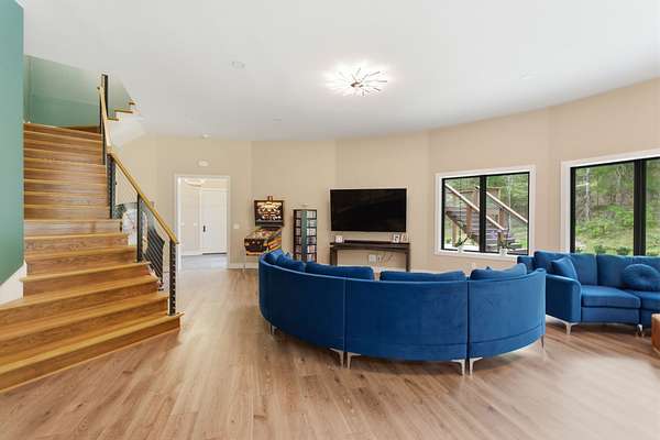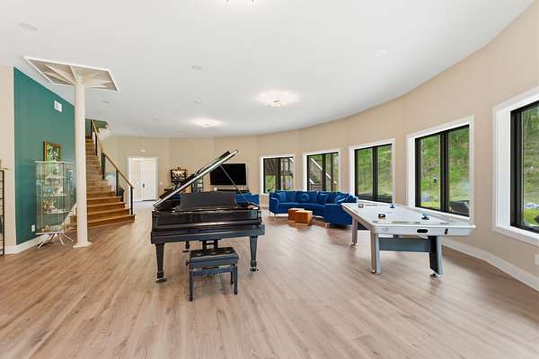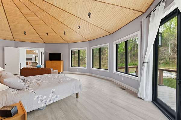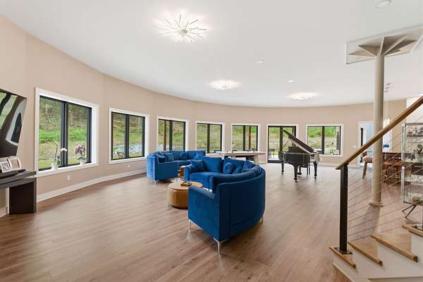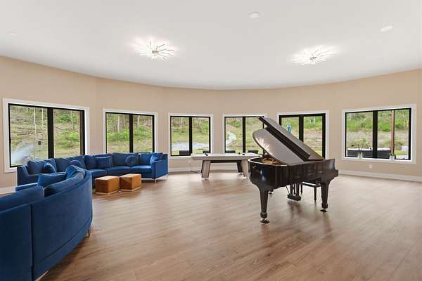 Designed with both scale and intention, the residence features multiple kitchens, offering flexibility for entertaining, multi-generational living, or seamless hosting at any level. Expansive windows line the home, filling each space with natural light and framing uninterrupted views of the surrounding land and water.