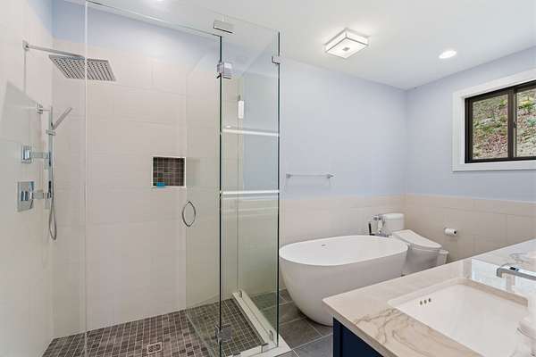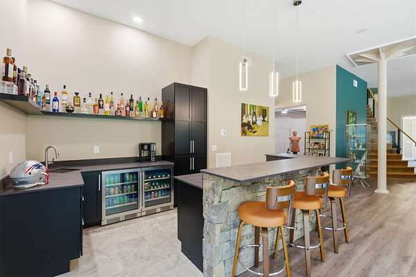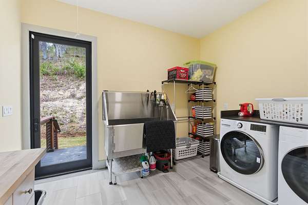 Inside, thoughtful details elevate everyday living, from a dedicated dog wash in the laundry room to a garage built with enthusiasts in mind, complete with a lift allowing for up to six vehicles.