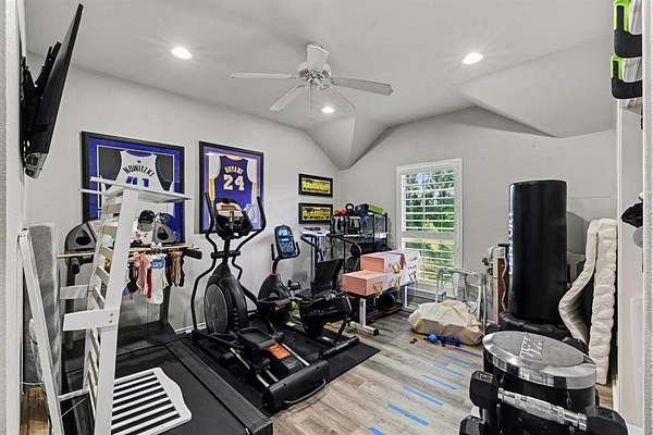 The interior impresses with abundant natural light, multiple staircases, vaulted ceilings, decorative lighting, and smart conveniences including central vacuum, flat-screen wiring, high-speed internet readiness, and cable availability. One rare highlight is the two full laundry rooms—one conveniently located upstairs and one downstairs—streamlining daily chores without the hassle of carrying laundry between floors.