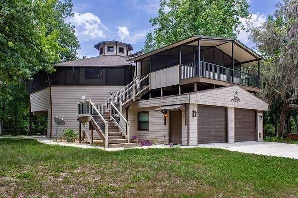 The main floor includes three additional bedrooms, a bathroom, a multipurpose room, laundry, and plentiful storage. Outside, ~11.8 acres of prime pasture with oak-shaded area's invite equestrian pursuits or future agricultural ventures. 40 x 52 Foot out building with bath and 2 overhead doors great for equipment, hobbies, convert to Barn, auto enthusiast. From its octagonal layout and handcrafted details to the wraparound porch and immediate equestrian proximity to Ocala Breeder Sales and minutes from the World Equestrian Center, this home offers a rare combination of form and function. Come experience a property where every element, inside and out, reflects thoughtful design and endless possibility. No HOA or restrictions. Zoned A1. Would be an ideal place near airport and OBS and World Equestrian Center for Horse Enthusiast or short term rental property. Ideal to use now and hold for future investment. Great Central Ocala Location. Priced to sell. Poised for future appreciation. Come and see this one of kind property with so many positive attributes. Imagine the possiblities.