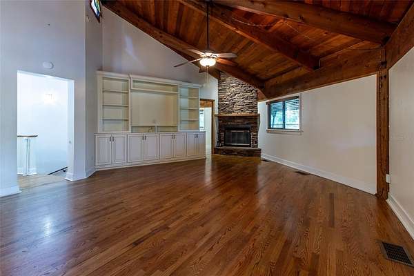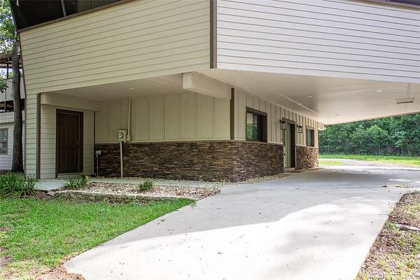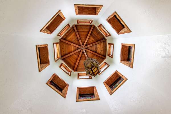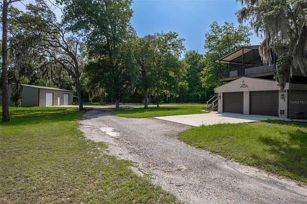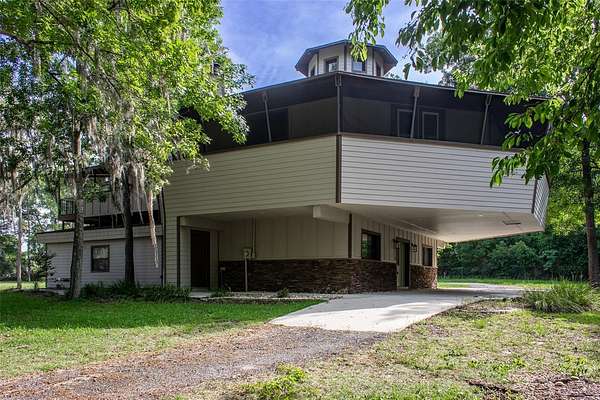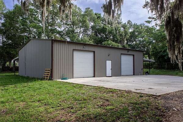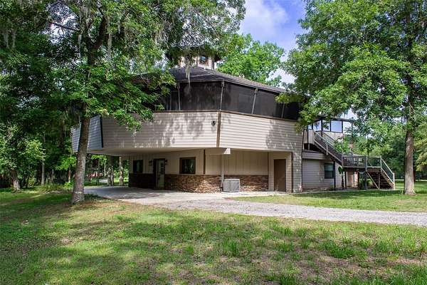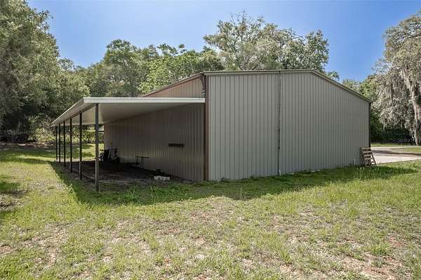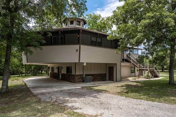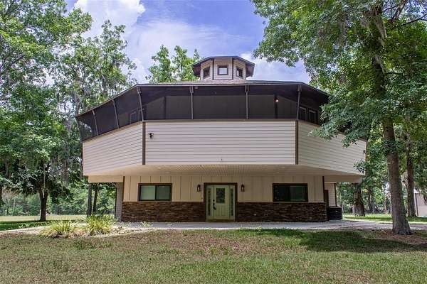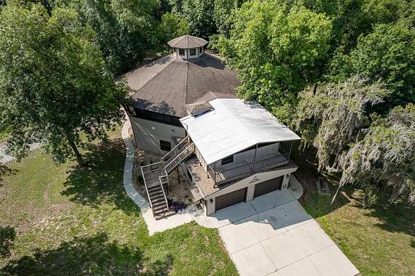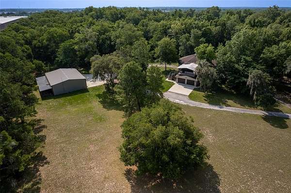 One or more photo(s) has been virtually staged. Adjacent to Ocala Breeder Supply OBS - Nestled beneath mature oak trees on 11.86 acres of cleared land in SW Ocala-- adjacent to Ocala Breeders' Sales--this unique octagonal-designed home blends craftsmanship with country living. A 2020 roof and HVAC system ensure comfort year-round, while the metal-framed workshop can stay a turnkey workspace or be retooled into a barn.