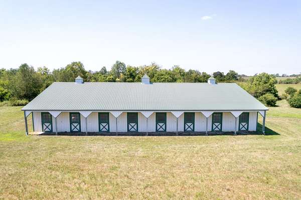 Equestrian Paradise in the Heart of Jessamine County! This exceptional 32+ acre farm offers the ideal canvas to bring your equine dreams to life. At the heart of the property is a charming barndominium featuring 1 bedroom, 2 full baths, a spacious eat-in kitchen, dining room, office, and a large family room, perfect for comfortable living or a weekend retreat. Attached is a 5-stall barn complete with a tack room, wash stall, and room to expand with additional stalls or equipment storage. Horse lovers will appreciate the thoughtfully designed layout and convenience. Ride year-round in the massive 200' x 80' indoor arena, prepped and ready for your preferred footing. An additional 22' x 80' storage area provides ample space for hay, tractors, and other essentials. Whether training, boarding, or just enjoying your own horses, this setup is ready to go. Surrounding the buildings are 32+ acres of flat to gently rolling pastures, divided into four fenced sections ideal for rotational grazing or multiple herds. The foundation is here - customize it to make it your own private equine haven!