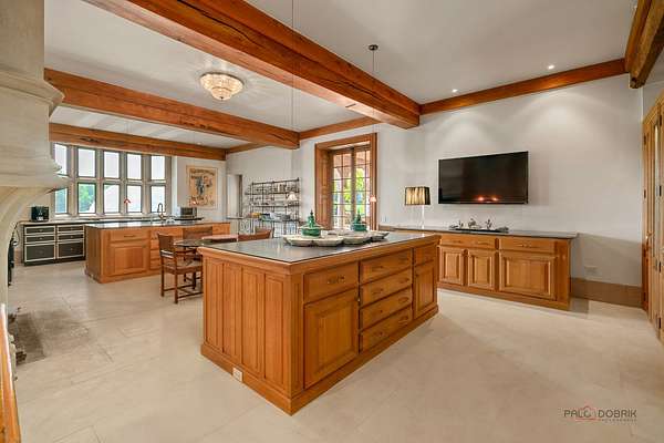 Beamed Ceilings, Built-In Features, Cathedral Ceiling(s), Dry Bar, Elevator, Special Millwork, Walk-In Closet(s)