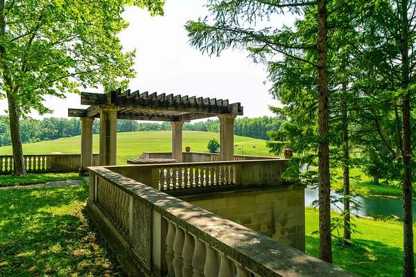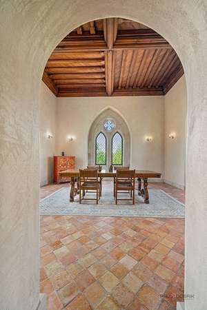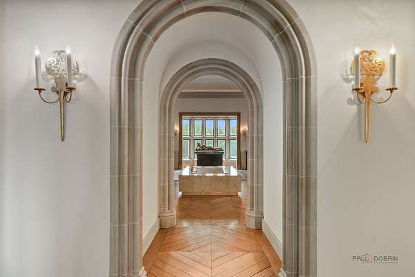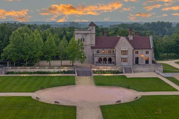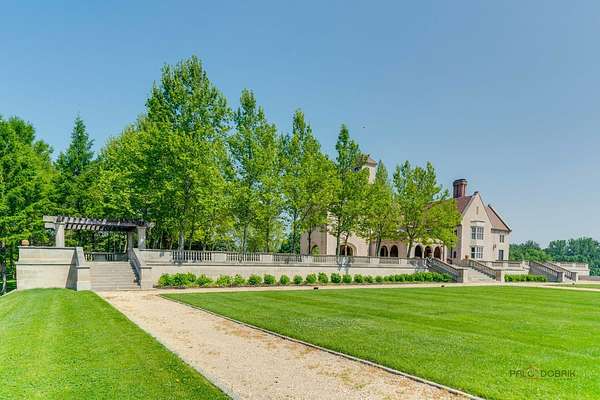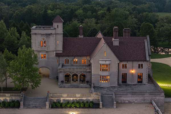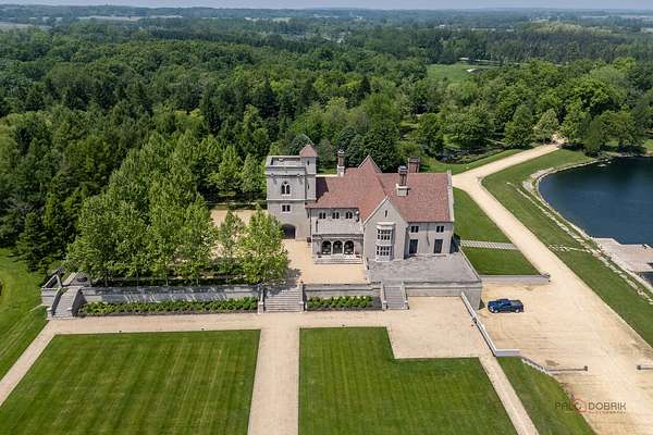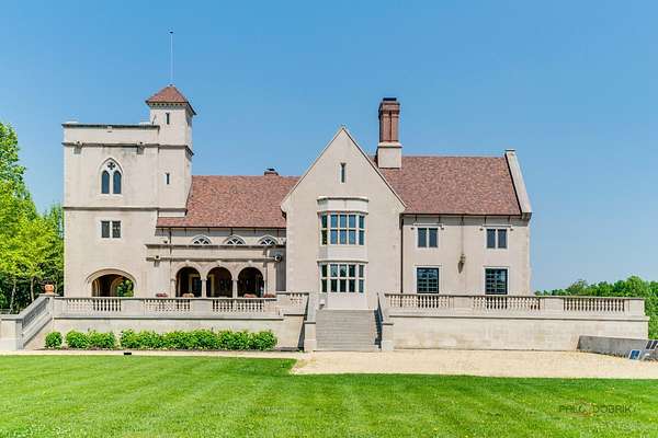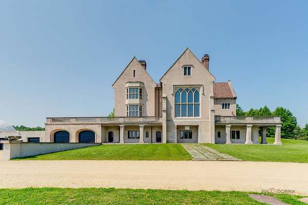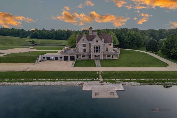 Experience the distinctive charm of this English Manor-an extraordinary architectural gem that flawlessly unites classic sophistication with exquisite attention to detail. Set on 52 breathtaking acres, this one-of-a-kind estate offers a harmonious balance of sophistication and serenity in a setting that simply cannot be replicated at this price. Nestled in a secluded, park-like environment just an hour and a half north of Chicago, the property feels like a European escape without ever leaving the Midwest. From the moment you enter, the attention to detail is apparent. The interior boasts eight exquisite French limestone fireplaces, each a replica of those found in historic French chateaux and installed by master stone carvers from France and England. Beamed ceilings imported from England and hand-laid limestone and wood floors from France infuse the home with warmth and Old World charm. A team of dedicated European artisans ensured that every finish reflects a commitment to quality and authenticity. The home's structural integrity matches its aesthetic beauty. Built with 12-inch reinforced concrete blocks and 6-inch insulated interior walls, the estate offers exceptional durability and energy efficiency. Radiant heated floors span the entire home, laid over both poured and precast concrete for long-lasting comfort. The exterior and select interiors feature stunning Indiana limestone, while a roof of imported French clay tiles adds to the manor's timeless character. A partially finished walkout basement spans over 7,800 square feet and includes three potential bedrooms, multiple bathrooms (including one finished half-bath), a kitchen, living room, garage, laundry room, and a wine cellar-offering incredible potential for customization. On the garden level, a striking 60-foot domed space awaits, fully furnished and ideal for elegant private gatherings or memorable events. Beyond the manor itself, the estate is a natural paradise. Meandering streams connect multiple pristine ponds teeming with fish, and a terraced hill awaits transformation into a vineyard or orchard. With acres of space for picturesque horseback riding trails, this is a dream setting for equestrian enthusiasts and nature lovers alike. Whether you envision a private family retreat, an exclusive corporate getaway, an event venue of unparalleled distinction, or a unique business opportunity such as a private timeshare or second home, this property offers endless possibilities. More than a residence, this is a legacy-an invitation to build something enduring in a setting of rare beauty and tranquility. Embrace the opportunity to own a sanctuary where elegance, nature, and adventure converge-a true piece of paradise to be treasured for generations. Additional home can be built on the 52 acres. Home sold as-is.