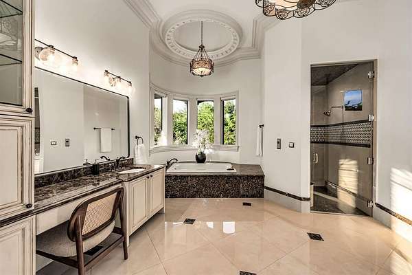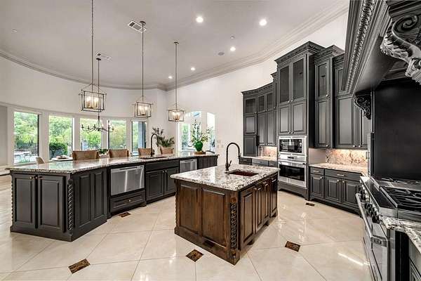 - Built-In Features, Built-In Wine Cooler, Cable TV Available, Cathedral Ceiling(s), Chandelier, Decorative Lighting, Double Vanity, Eat-In Kitchen, Elevator, Granite Counters, High Speed Internet Available, In-Law Suite Floorplan, Kitchen Island, Multiple Staircases, Open Floorplan, Second Primary Bedroom, Smart Home System, Sound System Wiring, Walk-In Closet(s), Wet Bar