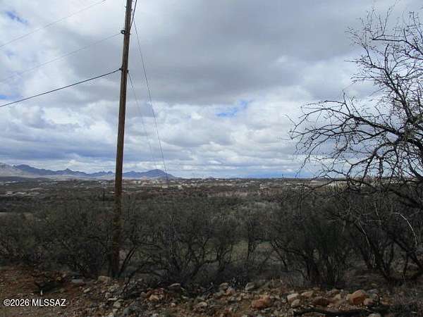 Est $150/moDiscover .83 acres in Rio Rico Ranchettes with peaceful mountain views and wide-open desert surroundings. This north/south-facing lot offers flexible R-2 zoning and easy access from a quiet dirt road. Electric, phone, and water appear to be at the lot line; septic needed. A great opportunity to build a getaway, hold as an investment, or create your own desert retreat. No HOA and low annual taxes.