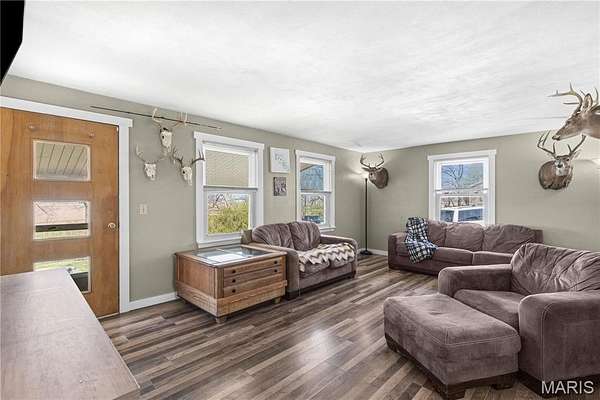 Discover your dream retreat in unincorporated Collinsville! This well-maintained ranch home boasts three spacious bedrooms and two baths, all nestled on two private acres with no restrictions. Enjoy bow hunting right in your backyard, along with serene views and mature trees that create a tranquil atmosphere.