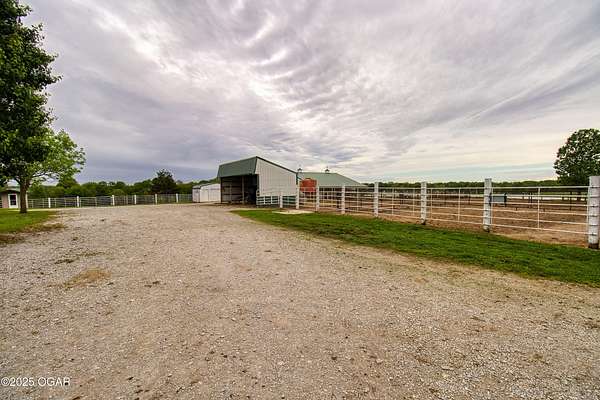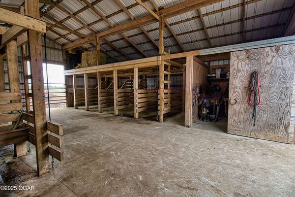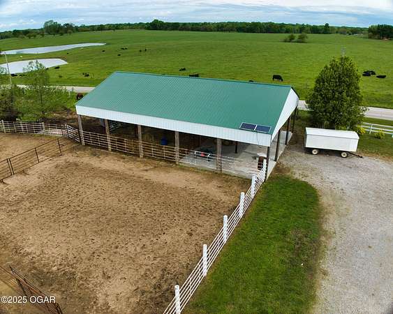 Discover the perfect blend of rural charm and comfort on this stunning 45.71 +/- acre farm west of Sheldon, Missouri! The slightly rolling acreage features a lush mix of mainly clover and fescue, ready for your cattle or horses. A slightly wooded area follows the wet weather creek creating an opportunity for deer and turkey hunting. The stocked pond, complete with a dock, is perfect for fishing or watering livestock. The charming homestead is a 5 bed / 3 bath constructed in 2021 and is 2,764 square feet. The home currently does not use electricity but is set up to easily have access. The home would also need a HVAC system if the next buyer would so desire as it currently features a wood stove and has a propane tank. Additional farm features include: a 40x60 hay barn, a 9 stall horse barn, 2 loafing sheds, a green house and a garden area. Situated off a black top road just outside Sheldon, this rural hobby farm allows for rural living but easy access to I49. If you are in the market for a beautiful home on acreage, then looking no furthers than this charming property.