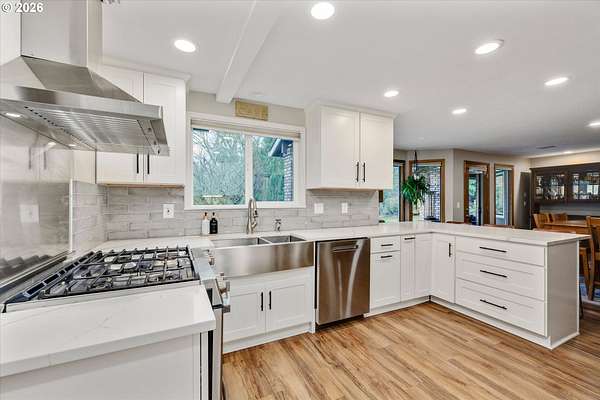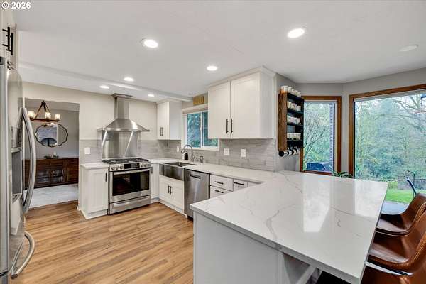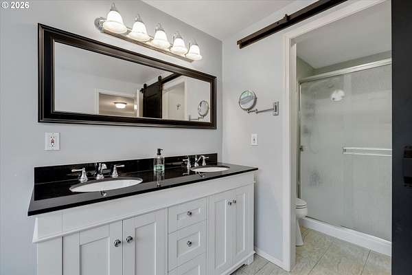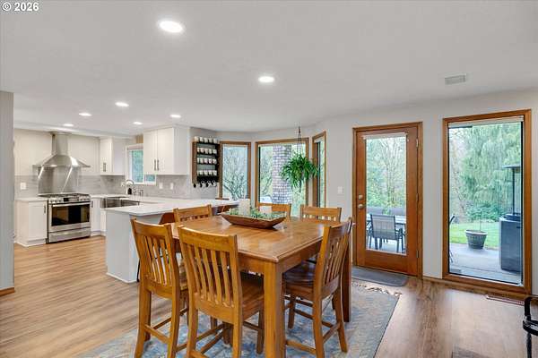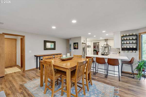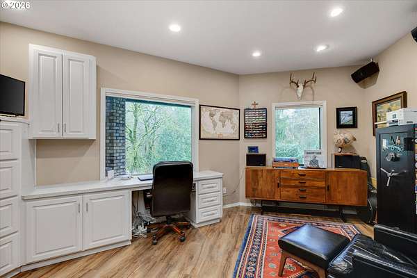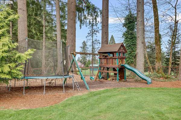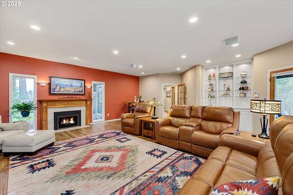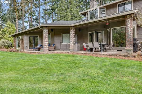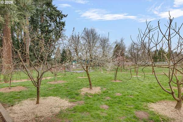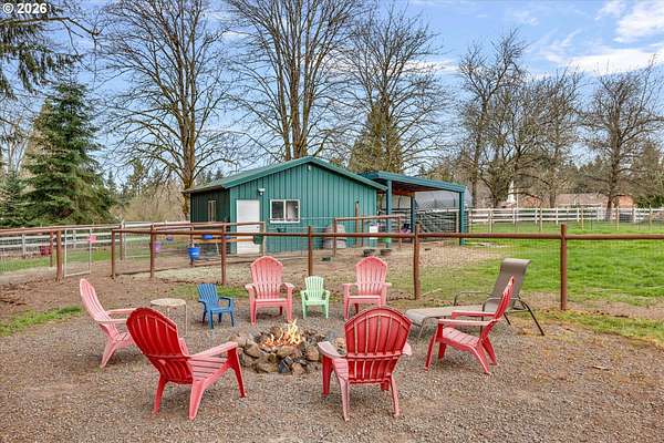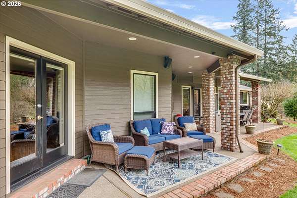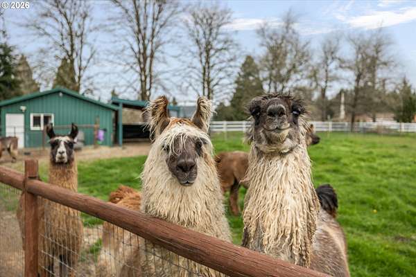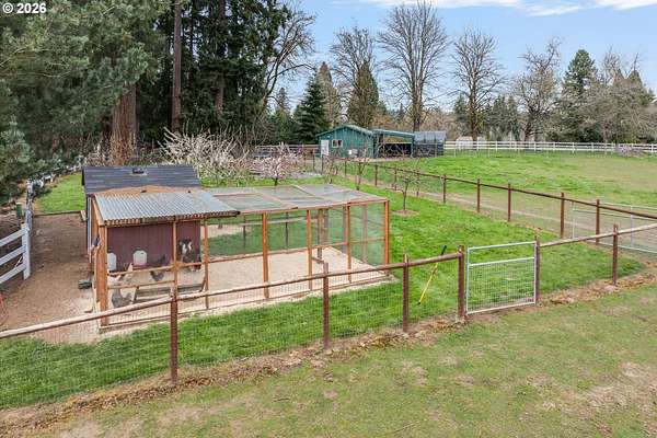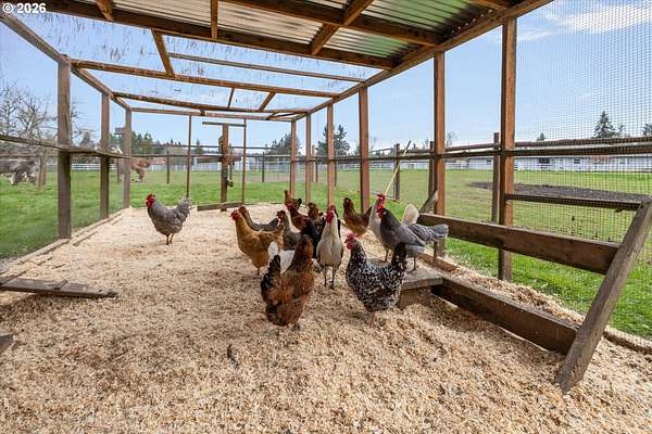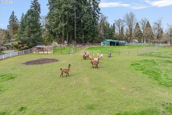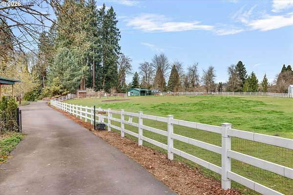 Nestled in a private country setting, this exceptional 4 bedroom, 3.5 bathroom home backs to a sprawling green space bringing nature right to your doorstep. Inside, you'll find vaulted ceilings, new LVP, and a beautifully updated kitchen featuring quartz countertops and stainless steel appliances. The spacious family room is warm and inviting, with a new gas fireplace, built-ins and French doors leading to the patio. You'll find a bedroom with ensuite on the main floor, along with an office. The primary suite provides a serene retreat with forest views and a charming clawfoot soaking tub.This property is designed for both functionality and lifestyle. Enjoy a 4-car garage complete with a workout space, a 40x30 shop, large carport, and a 3-stall barn-ideal for hobbies, storage, or animals. The gated pasture is surrounded by white synthetic fencing and a paved private driveway. Step outside to your own private oasis featuring mature landscaping with sprinklers, a large orchard with a wide variety of fruit trees, a spacious chicken coop, and a firepit area-perfect for hosting friends or family. Recent updates provide peace of mind and include: newer water heater, furnace, A/C, and exterior paint. This one-of-a-kind property offers the perfect blend of privacy, comfort, and country living, all just 7 minutes to I-205 and 10 minutes to downtown Historic Oregon City.