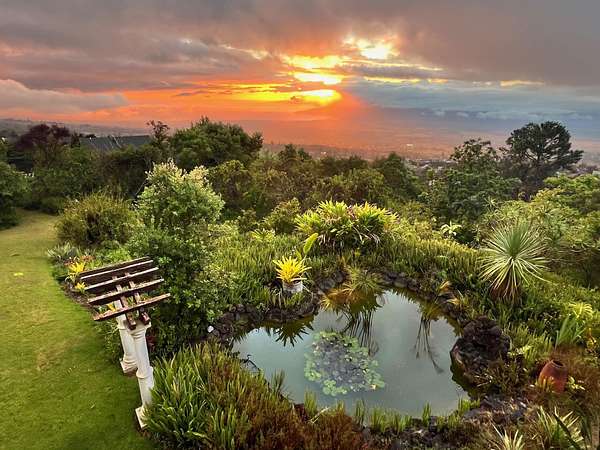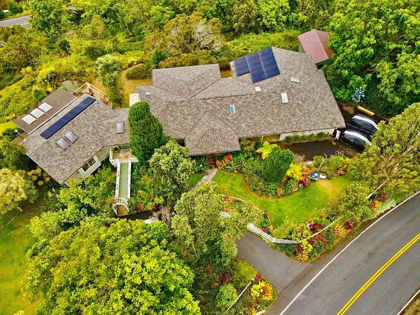 Nestled on the majestic slopes of Haleakala, this fully renovated Upcountry estate is offered an exceptional opportunity for discerning buyers. The residence features separate formal living room, family room/dining room, an office/den, three bedrooms, three full bathrooms, including a separate Ohana, providing flexibility for guests or extended living. Designed in a refined California country style, the home showcases sweeping 280-degree bi-coastal views of Maui, with breathtaking vistas of the West Maui Mountains and unforgettable Hawaiian sunsets enjoyed from the privacy of your own backyard. Recent upgrades include renovated bathrooms, new luxury plank vinyl flooring, new kitchen counter tops & back splash, new 50-year presidential shingle roof, photovoltaic solar system with Tesla battery, and a dedicated workshop. Over 1,000 square feet of expansive decking invites seamless indoor-outdoor living, perfect for taking in panoramic island views. The professionally landscaped and irrigated grounds resemble an arboretum, featuring rare and exotic flowering plants, fragrant jasmine, and a diverse fruit tree grove including citrus, apple, pear, plum, avocado, coffee, peach, sugar apple, and persimmon. Unwind in the very private backyard spa surrounded by tree roses, or enjoy a glass of wine by the tranquil koi pond as the sun sets over the island. With low utility costs, this property is ideal as either a primary residence or a luxurious vacation home. Experience the serenity, beauty, and consistently pleasant climate of Upcountry Kula, your opportunity to own a true piece of paradise with only 30 minutes away from airport and Kahului area and 15 minutes away from Pukalani shopping center.