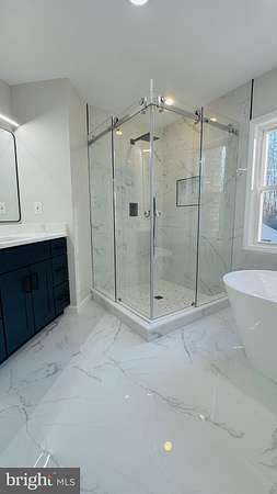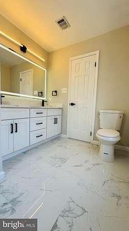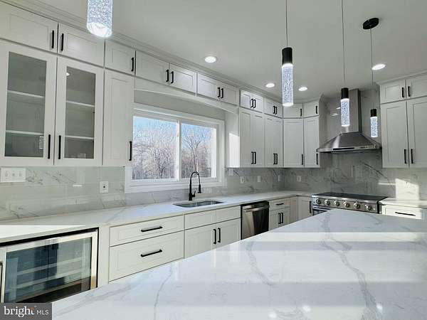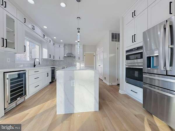 An exceptional and truly stunning 3-level Colonial residence, exquisitely renovated and offering 6 bedrooms, 4.5 baths on 2.41 private acres in a serene cul-de-sac setting. Surrounded by woods on three sides and featuring a vast, flat backyard backing to nature, this remarkable home offers rare privacy and breathtaking scenic views-while remaining conveniently close to shopping, dining, entertainment, and major highways. The main level showcases a newly redesigned gourmet kitchen appointed with premium stainless steel appliances, including a wall oven and microwave combo, refrigerator, stove, designer range hood, dishwasher, and wine cooler. Quartz countertops, upscale custom cabinetry, and a dramatic waterfall center island complete the space. The kitchen opens seamlessly to a sun-filled breakfast area and a spacious family room anchored by a fireplace. Expansive French glass doors lead to a large elevated deck overlooking the meadow and wooded backdrop-an extraordinary setting for relaxing or entertaining. A formal living room and dining room flow effortlessly together, creating elegant gathering spaces. A private main-level office/library provides the ideal work-from-home environment, and a stylish powder room adds everyday convenience. Upstairs, the luxurious primary suite serves as a true retreat, featuring three closets and a spa-inspired bath completely renovated with designer finishes. Highlights include new tile throughout, dual vanities with new faucets, mirrors, and lighting, a frameless glass-enclosed shower, and a freestanding soaking tub positioned beneath a sunlit window. A private water closet with its own door and window enhances both privacy and comfort. A secondary bedroom suite offers a walk-in closet and a fully renovated private bath with new tile, vanity, fixtures, mirror, lighting, toilet, and bathtub. Two additional generously sized bedrooms share a beautifully updated Jack-and-Jill bath, also fully renovated with high-end finishes. The fully finished walk-out lower level expands the living space dramatically, featuring two additional bedrooms and two brand-new full baths-one with a bathtub and one with a shower. A massive recreation room offers flexibility for multiple functional areas such as a media room, fitness space, or playroom. A wet bar-complete with an additional wine cooler-enhances entertaining, and doors open directly to the patio and expansive backyard. Extensive upgrades include: New flooring throughout; Fresh interior paint; New designer light fixtures; New high-end synthetic cedar roof; New windows; New garage doors. Set on 2.41 acres with three sides backing to woods, this property offers a rare combination of refined design, modern upgrades, and exceptional privacy-making it one of the most impressive homes in its price range. A truly special offering-this is the dream home you've been waiting for.