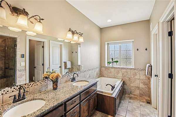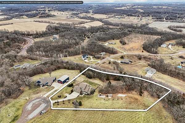 Welcome home to this beautiful 5 bedroom estate home located on just over three acres in a peaceful rural subdivision with a quiet cul-de-sac setting and sweeping county views. This alluring 1.5 story home showcases an elegant open floor plan, rich hardwood floors and a stone fireplace anchoring the living room. Expansive Windows flood the space with natural light. The kitchen is ideal for entertaining offering granite countertops, an island, walk in pantry and a formal dining area. The main floor primary suite is a private spa like retreat with a complete with heated tile floors, double vanities, a jetted tub and an oversized shower with rain shower head. Upstairs includes a loft space which is ideal for multiple uses including hanging out with family and friends, playroom or even office space. You will also find three generous sized bedrooms. The walkout basement adds even more living space with the family room, recreation area and a fifth bedroom. Enjoy the outdoor views from the covered stone patio, the hot tub or the deck off the primary level. The deep garage easily fits a large truck or SUV and includes RV hookups. Store all your yard supplies in the detached shed that is staying. This property truely is the perfect blend of luxury and country living.
