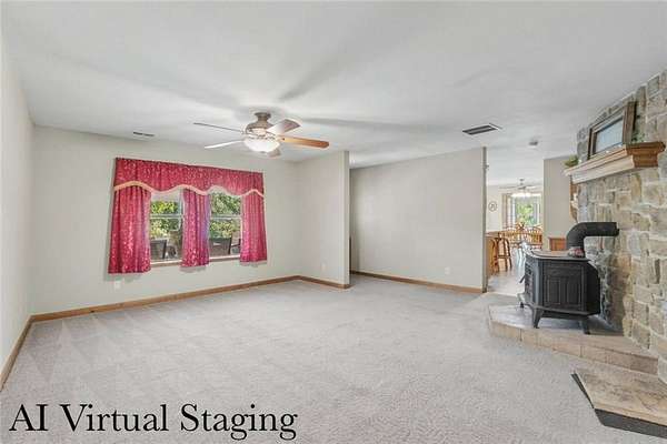 This remarkable one-owner, custom-built earth-contact home combines comfort, privacy, and energy efficiency in an ideal location just outside Warsaw, MO. Sitting on three wooded acres only half a mile from a convenient boat ramp onto Truman Lake Reservoir, this property offers the perfect balance of recreation and relaxation. All on one level, the home features three bedrooms, two full baths, and a versatile layout designed for modern living. A bright sunroom welcomes you at the entry, while the main family room centers around a grand wood stove-perfect for cozy winter evenings. The split-bedroom design adds extra privacy, and there's even a dedicated office space in addition to the bedrooms. The pantry is massive, making it a prepper's dream. An additional living area off the garage expands your options for work or play. Outdoors, the landscaping is beautifully maintained, highlighted by a circle driveway and a firepit gathering area at the edge of the trees. The wooded acreage invites exploration, wildlife watching, and trail adventures right in your own backyard. A detached outbuilding provides extra workspace, complemented by a fenced garden area and greenhouse-ready for your next project. Practicality meets independence here with a private well, septic system, and abundant room for hobbies and homesteading. This property truly has it all-space, character, efficiency, and proximity to the lake. Come see why this property doesn't leave much to be desired!