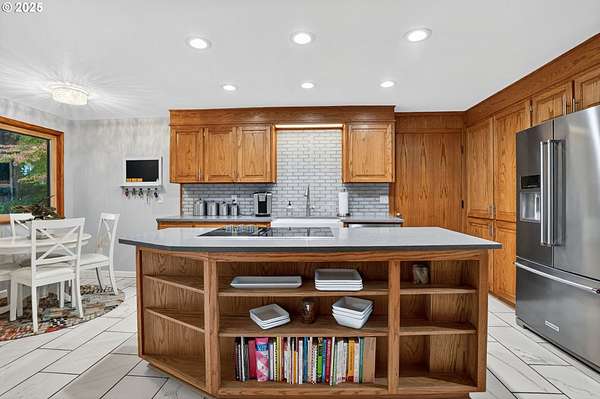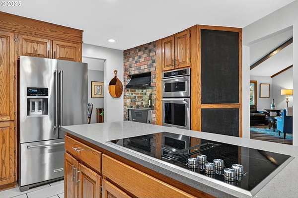 - Builtin Oven, Convection Oven, Cook Island, Dishwasher, Disposal, Down Draft, Free Standing Refrigerator, Indoor Grill, Microwave, Plumbed For Ice Maker, Quartz, Solid Surface Countertop, Stainless Steel Appliance, Tile