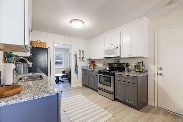 - Built-In Electric Range, Dishwasher, Microwave, Refrigerator