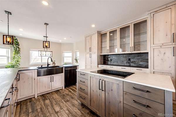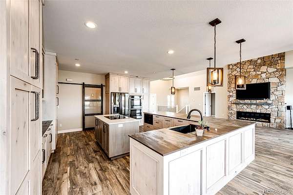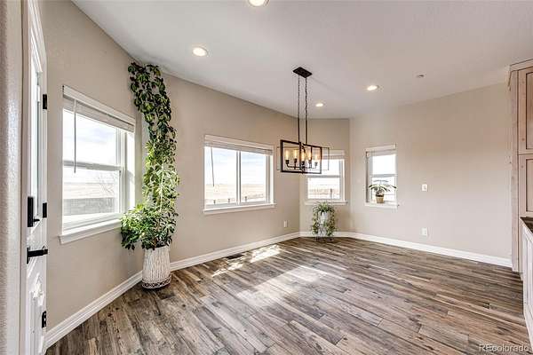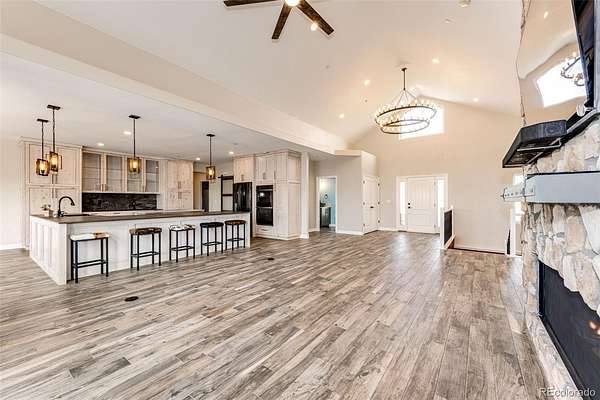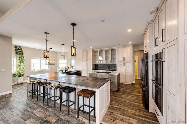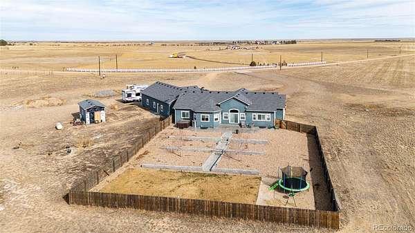Luxury, space, and privacy converge in this exceptional 4,617 sq ft estate set on 35+ breathtaking acres, offering the perfect blend of refined living and wide-open freedom. Designed for both everyday comfort and elevated entertaining, this stunning residence features 5 bedrooms, 5 bathrooms, and an open floor plan highlighted by soaring vaulted ceilings and expansive windows that flood the home with natural light. The main level includes two spacious bedrooms, including a large primary suite with an impressive bathroom and luxury walk-in shower, as well as an additional main-floor bedroom perfect for guests or a home office. The heart of the home is the chef’s kitchen, showcasing a massive walk-in pantry, oversized island, and seamless flow into the dining and living areas, ideal for entertaining and everyday living alike. The fully finished basement expands your living space with three additional bedrooms, a gym and flex space, a large family room with a wet bar, and a dedicated theatre room, creating the ultimate setting for recreation, relaxation, and hosting. A large laundry/mudroom off the heated, insulated 4-car attached garage features a convenient pet-wash station, combining everyday functionality with thoughtful design. Built with peace of mind, the home is equipped with a fire suppression system, adding an extra layer of safety and security. Outdoors, the 35+ acres deliver unmatched privacy, breathtaking views, and endless possibilities, ideal for horses, recreation, additional outbuildings, or simply enjoying serene Colorado living.