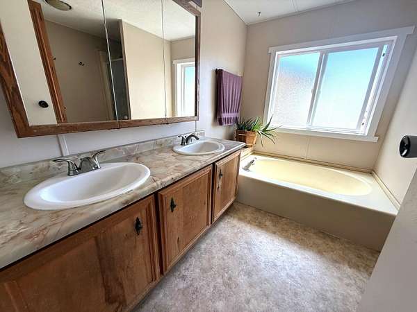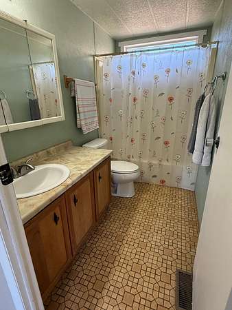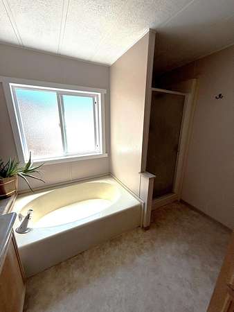 - Ceiling Fan(s), Double Vanity, Fiberglass Stall Shower, Laminate Counters, Linen Closet, Open Floorplan, Pantry, Shower/Tub Combo, Vaulted Ceiling(s)