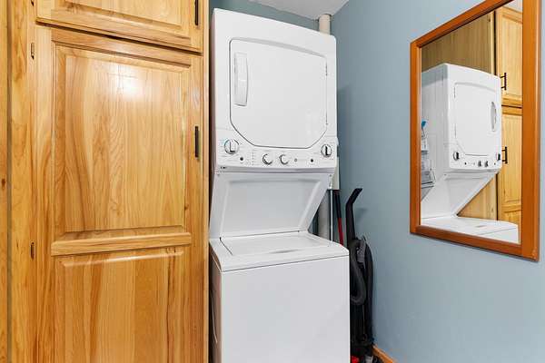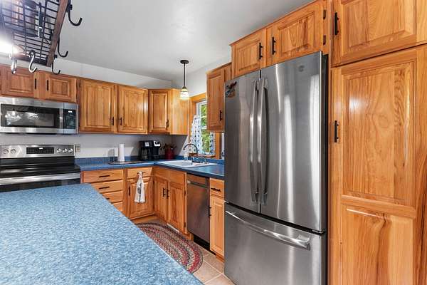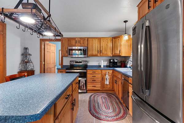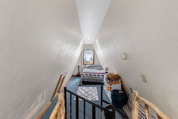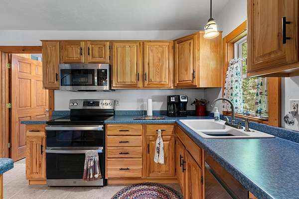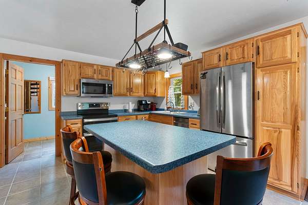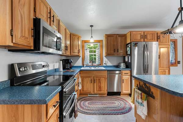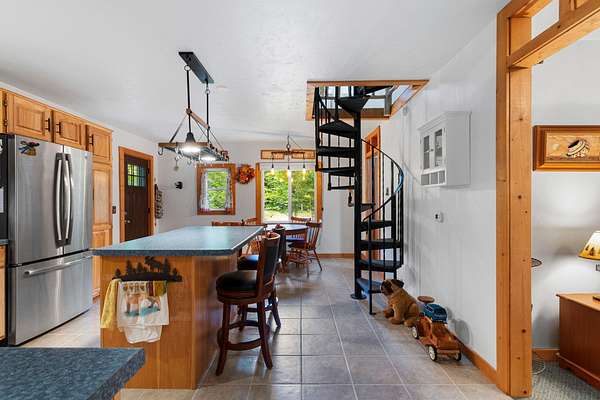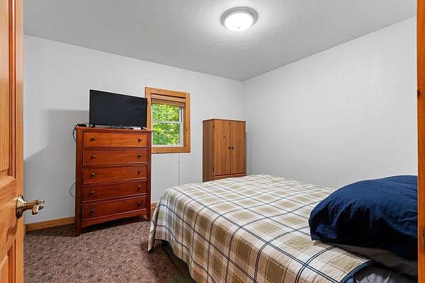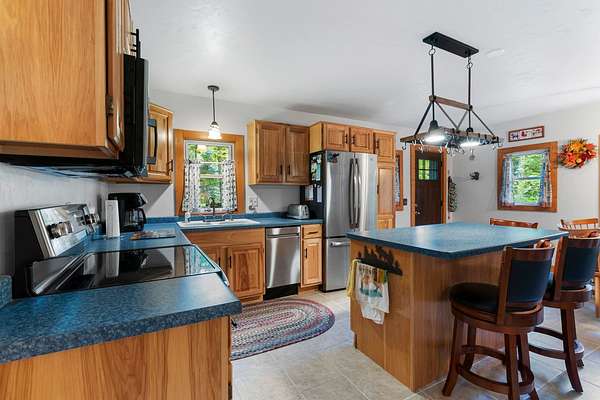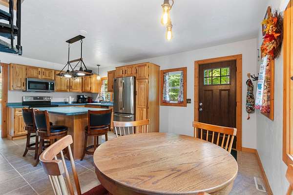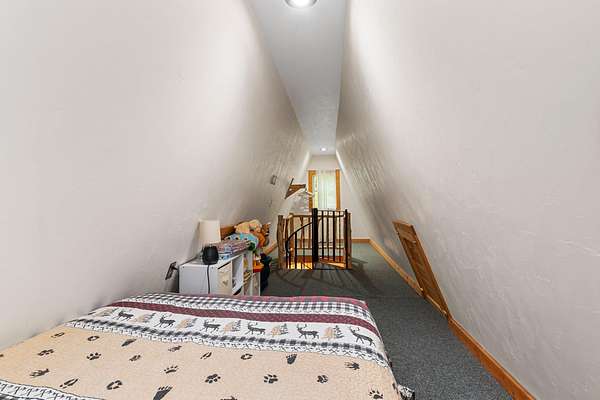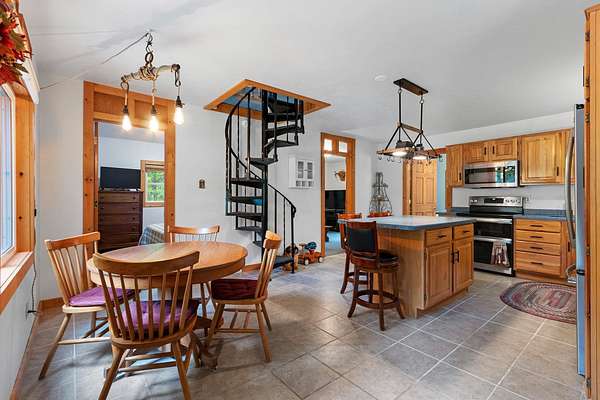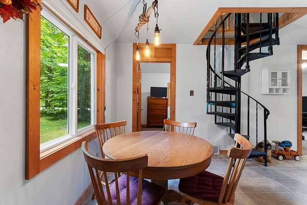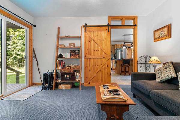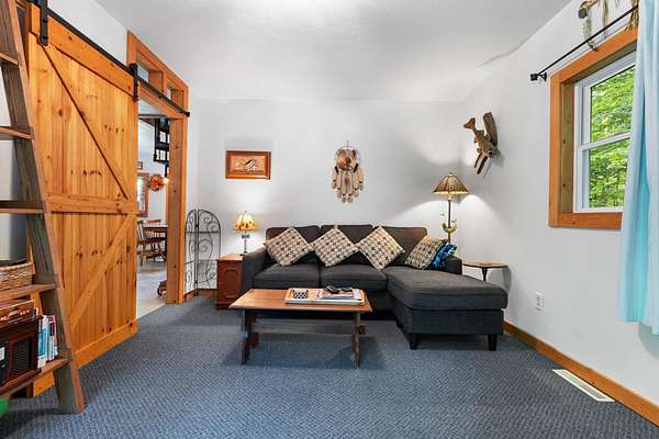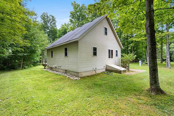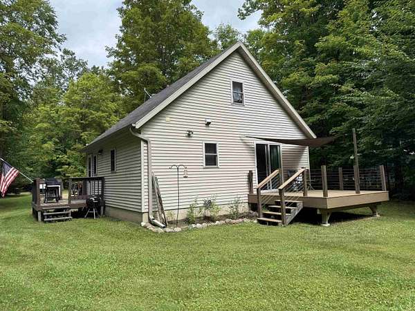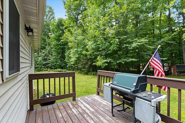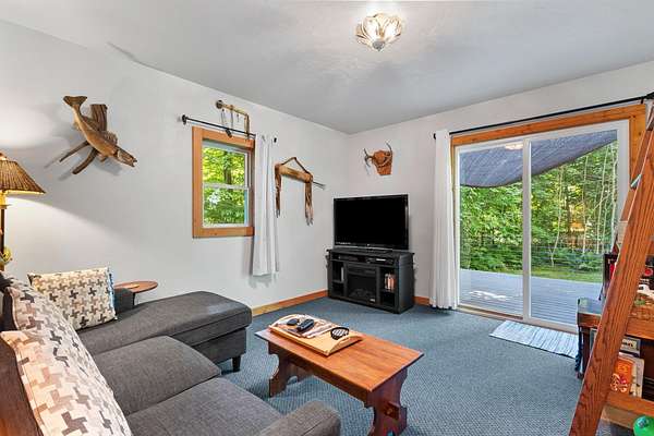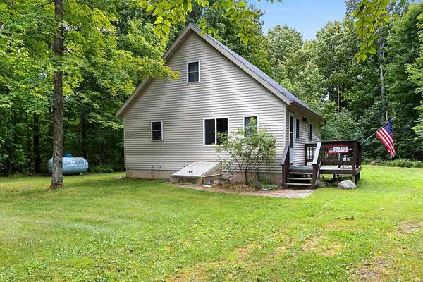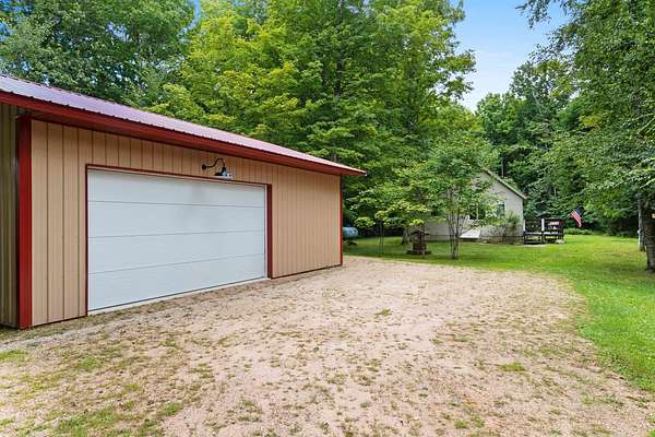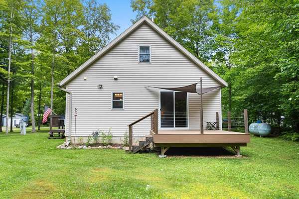 Est $1,370/moNEW PRICE! A beautiful bright gem set on 2.5 wooded acres. This 4-season home has a sun-drenched deck for enjoying the wildlife. The kitchen has hickory cabinets and an island with seating and all appliances. There is a large bathroom with storage cabinet and stackable washer/dryer. The primary bedroom is on the first floor, and a spiral staircase to the loft with bed. Includes a sofabed in the living room. The garage is newer and will accommodate all your toys. Come and enjoy the lakes (the Horn Lake boat landing is nearby)!