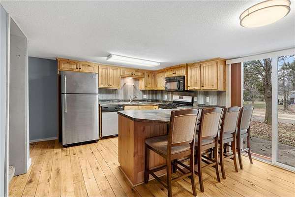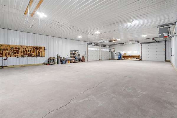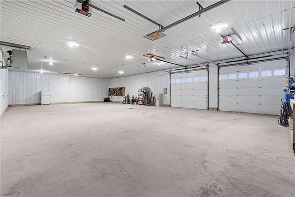 Tons of opportunity on this 7.8-acre property in Andover! This unique property features a massive 40 x 70 heated pole shed—perfect for equipment storage, multiple vehicles, or the ultimate workshop. A fully insulated and sheetrocked 3-stall detached garage adds even more flexibility. Offering a rare combination of space, privacy, and functionality, this property is loaded with potential. The home features 3 bedrooms and 2 bathrooms, with a main level kitchen offering wood flooring, generous counter space, updated cabinetry, and modern appliances. The living and dining areas are open and inviting with high ceilings, a mix of carpet and wood flooring, and abundant natural light. A full bathroom and main level laundry room add everyday practicality. Upstairs includes all three bedrooms along with an additional bathroom, while the lower level provides excellent storage space. A great opportunity to build equity and make it your own!
